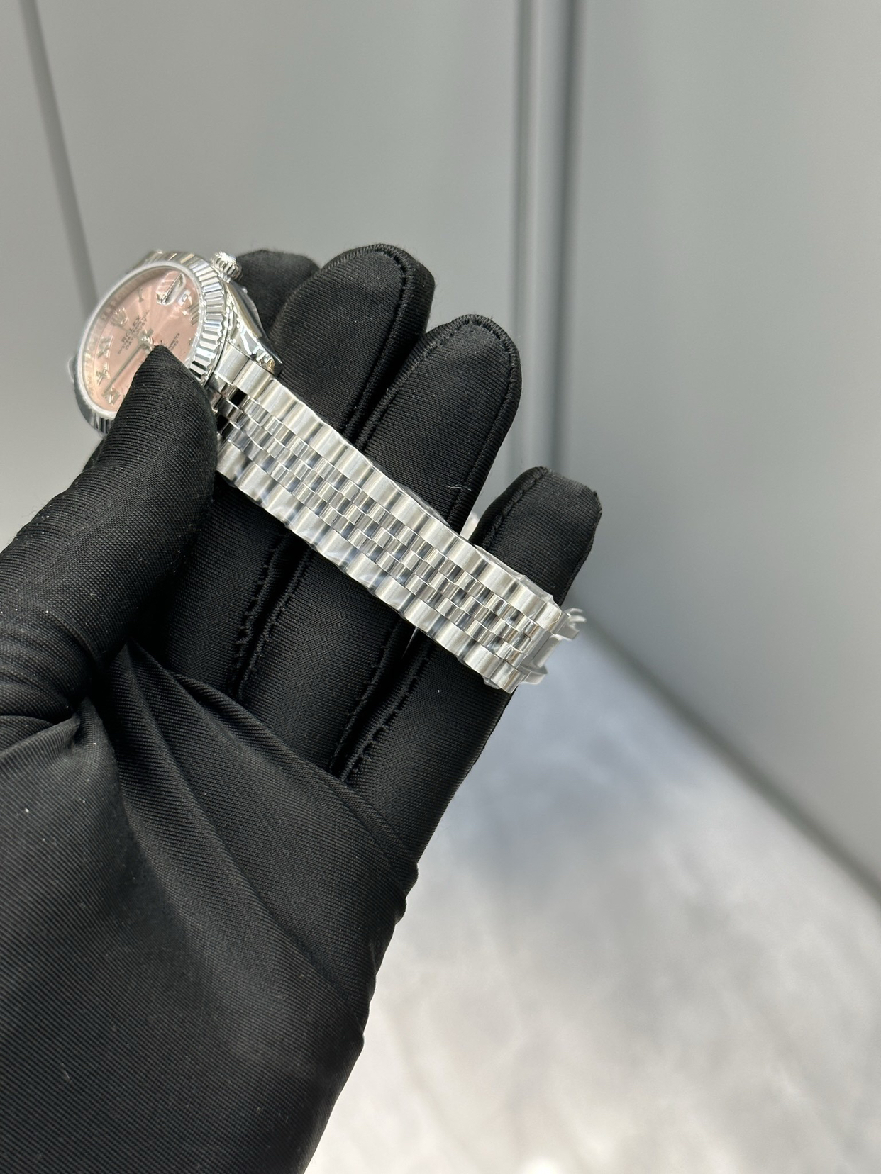 初见劳力士日志型粉面腕表时,仿佛遇见时光中开出的一朵温柔之花。这抹粉色调得不张扬、不稚嫩,是一种经过岁月沉淀的优雅色泽,在光线下流转着珍珠般的温润光泽。