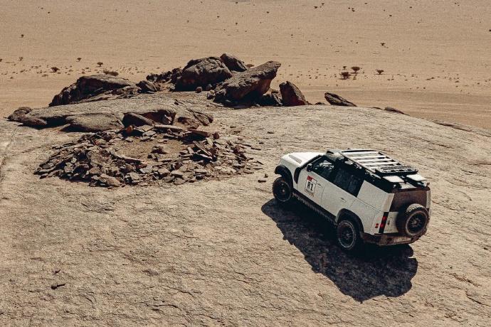 勘路先锋路虎卫士 欢迎来到2026达喀尔冒险之旅。 达喀尔的灵魂和魅力就在于没有固定赛道,只有每年重新探索和定义的未知新路线 。 即将出征2026达喀尔拉力赛的路虎,除了达喀尔赛车卫士D7X-R,还向组委会提供了六辆基于卫士110重度改装的勘路车。 目前,首批两辆勘测车已投入工作,为2026年达喀尔拉力赛那充满未知与挑战的终极路线进行最终勘测。 源自P300发动机驱动的110型车型,并经过拉力赛改装车内防滚架、加固底盘防护、四点式安全带、18寸全地形轮胎、额外照明设备和额外增加700公路续航的副油箱等等。 当然,赛场上我们还是得回归卫士D7X-R视角,可以说史上最强大、性能最佳的路虎卫士就它了。[机智]【来自懂车帝车友圈】