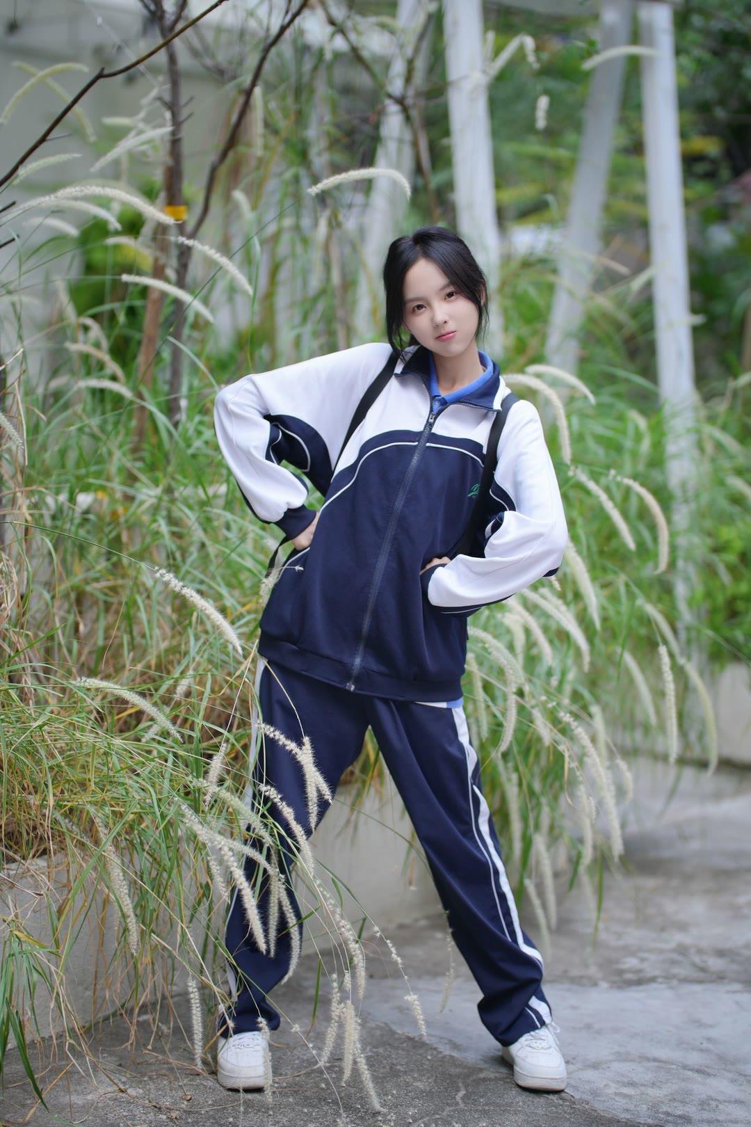 青春洋溢的校园风,绿白相间的运动服,少女心满满!