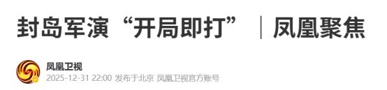 开局即开打!2025年12月29日,对台军演正式开始!台湾前海军舰长黄征辉,抛出让台当局恐慌的词:尊重!   随着日本以及美国等国家强势干涉我国的台湾问题,我国选择对台举行了军事演习。此次军事演习的目的非常明确,那就是警告台独分子以及外部势力。   中国绝对不允许任何分裂国家统一的行径存在,更不允许任何外部势力干涉中国的内政。所以在2025年12月29日的时候,相关部门在刚宣布军演消息之后,此次的军演就拉开了帷幕。   这一轮的军事演习吸引国际的高度关注,更是在台湾岛内引起了极大的讨论。在这次的军演中透露出来了一个重大的信号,那就是开局即开打!   大陆对台的打击能力非常强势,不需要任何的铺垫,直接可以采用武力的方式统一台湾。在这个过程中,台军根本就没有任何反应的余地。所以此次军演在台湾岛内带来的讨论热度非常大,台湾岛内多领域专家更是解读此次军演。   作为台湾前海军舰长的黄征辉,更是抛出了一个让民进党当局为之恐慌的词,那就是“尊重”。在他看来,大陆的此次军演就是对台湾最后的“尊重”。   如果台独分子继续同外部势力勾肩搭背的去搞分裂行径,那么大陆就会毫不客气的将枪口对准台湾。这并不是夸大其词,当下我国确实有这个实力。   我国一直没有采取武力的方式,主要是不希望用鲜血来换回祖国的统一。但这并不意味着大陆是个“软脚虾”,没有任何的能力,只会虚张声势。   对此,您怎么看?欢迎评论区留言您的看法。 (信息来源:封岛军演“开局即打”|凤凰聚焦-凤凰卫视) 【免责声明】:文中部分观点仅为个人看法,请理性阅读。