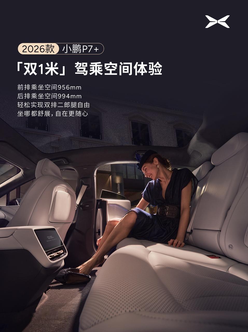 新款小鹏P7+ 称得上是轿跑里的空间怪物,把行政级的宽敞舒适落到了实处。新款小鹏P7+是空间怪物核心抓高得房率,不只是视觉上显大,实际乘坐空间更通透,前排不顶腿,前后排都能轻松跷二郎腿,头部也毫无压迫感,每1毫米空间都不浪费。打破传统轿跑空间桎梏,重塑了同级别轿跑的空间新标杆,兼顾轿跑调性与行政级乘坐体验。新款小鹏P7+前后排都能跷二郎腿