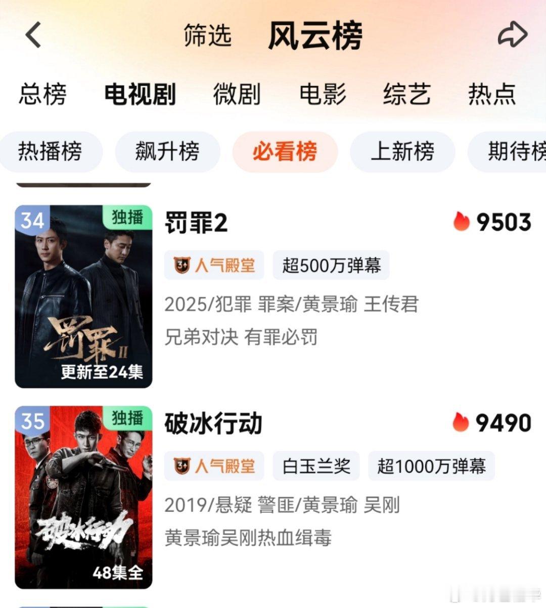 罚罪2黄景瑜罚罪2黄景瑜秦枫 9503!!!!超过《破冰行动》。秦枫加油继续冲!!!
