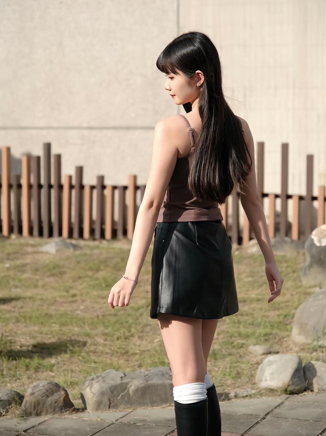 夜晚街头的温柔少女,微风轻拂发梢,静谧而美好。