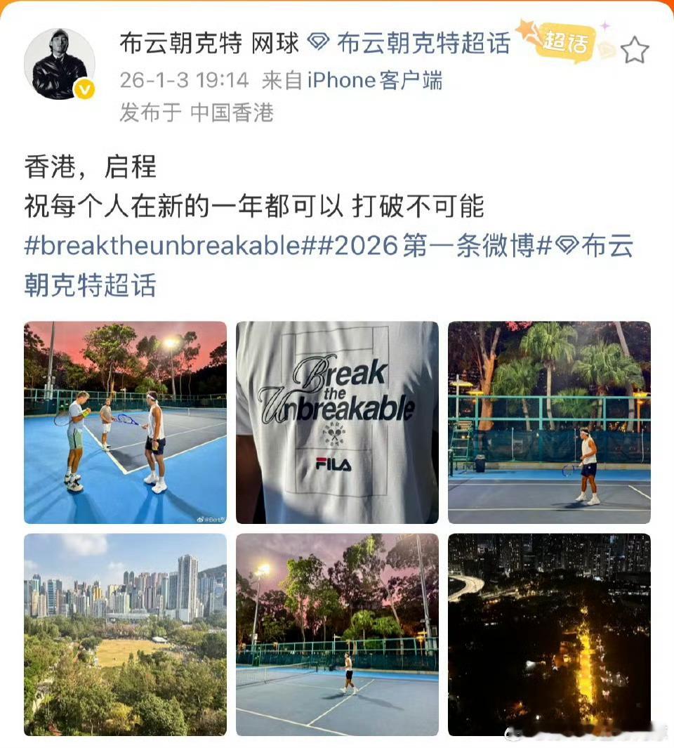 布云朝克特的新年祝福 小布送上新年祝福:祝每个人在新的一年都可以打破不可能。他将在香港赛开启新赛季,加油网球talking大会ATP
