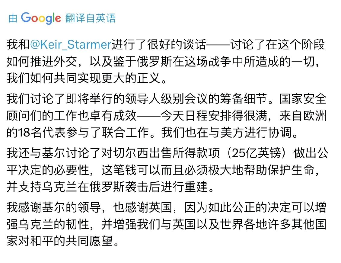 泽连斯基发文,要求斯塔默尽快落实售卖切尔西俱乐部的25亿英镑,以帮助乌克兰重建。