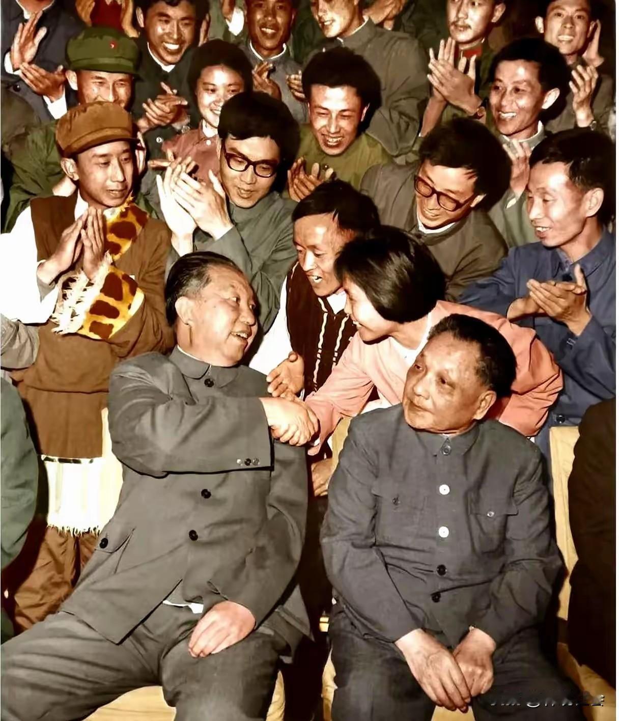 这张历史老照片,充分证明了那个时代民心之所向,可以说,照片内容表达的就是民意! 会议间隙,两位伟大的人物坐在一起,人民群众围在他们身边,争先恐后的伸出手与他们握手,向他们表达敬意! 因为,是他们掌握了发展的航向,让我们老百姓走向了富裕。所以,人民群众不会忘记,他们是改变历史的伟人!