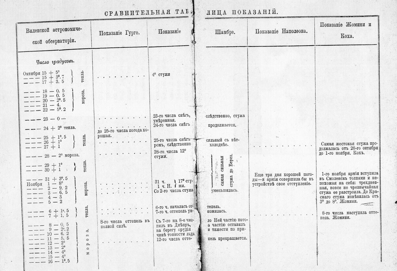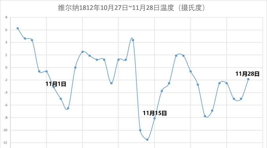 别列津纳河为什么在冬天涨水? 1812年11月,拿破仑率法军从俄国撤退时,俄国人焚烧了涨水的河道上的桥梁,差点将后撤的法军困于河边。为什么这个季节的别列津纳河会涨水? ------------------------------------ 1812年的冬天确实没有想象中那么冷,但也不是若干矫枉过正的说法里所说的暖冬。 实际上,圣彼得堡在1812年11月(俄历)的均温是零下6.5摄氏度,比历年来11月的均温低了4.8度,12月(俄历)的均温更是零下17.5度,比历年12月均温低了9.4度。 里加、基辅、华沙等地都是11月温度与历年均温差别不大,12月则远低于历年均温。 也就是说,大军团损失惨重的11月不算很冷,但已经没多少人可死的12月确实异乎寻常得冷。 拿破仑战争结束后,著名的骠骑兵诗人达维多夫自然成了笔耕不辍的论战先锋。 于是,当他企图反驳冬天毁灭了拿破仑大军的这一流行说法,撰写《歼灭法国大军团的是1812 年的严寒吗?》(Мороз ли истребил французскую армию в 1812 году?)一文时,便动手查了查留有详细1812年日均气温记录的维尔纳/维尔诺/维尔纽斯天文台,得出如下具体结果: 天文台记录的数据是列氏度,并非当今普遍使用的摄氏度,列氏度下冰点同样是0°,但沸点是80°,也就是说,列氏度乘1.25即为摄氏度。 俄历转公历,列氏度转摄氏度,整理后可得下表: 如图所示,11月中旬的维尔纳经历了一波回暖,11月18~19日这两天的均温更是蹿升回零度以上。 这一波短暂回暖在法军记录中也有体现。 截肢大王拉雷表示,克拉斯内战后,气温上升了10~12列氏度(12~15摄氏度),法军总算不至于继续吃严寒的苦头了。[1] 未来的卡斯特拉内元帅,同样在11月18日的日记条目中留下了“天气转暖,雪橇派不上用场”的记录。[2] 只可惜,这一波回暖解冻在让法军短暂喘了口气的同时,自然也令别列津纳河水位上涨。 参与修建浮桥的奥布里(Aubry)将军,便在11月24日提到别列津纳河斯图江卡河段的河面宽度已达40法寻(约80米),而且21日时还仅深3.5法尺(约1.1米)的河水,如今已足有5尺(约1.7米)深。[3] 按照当地农民的说法,则是天气回暖直接让河水涨了3尺(约1米)有余……[4]