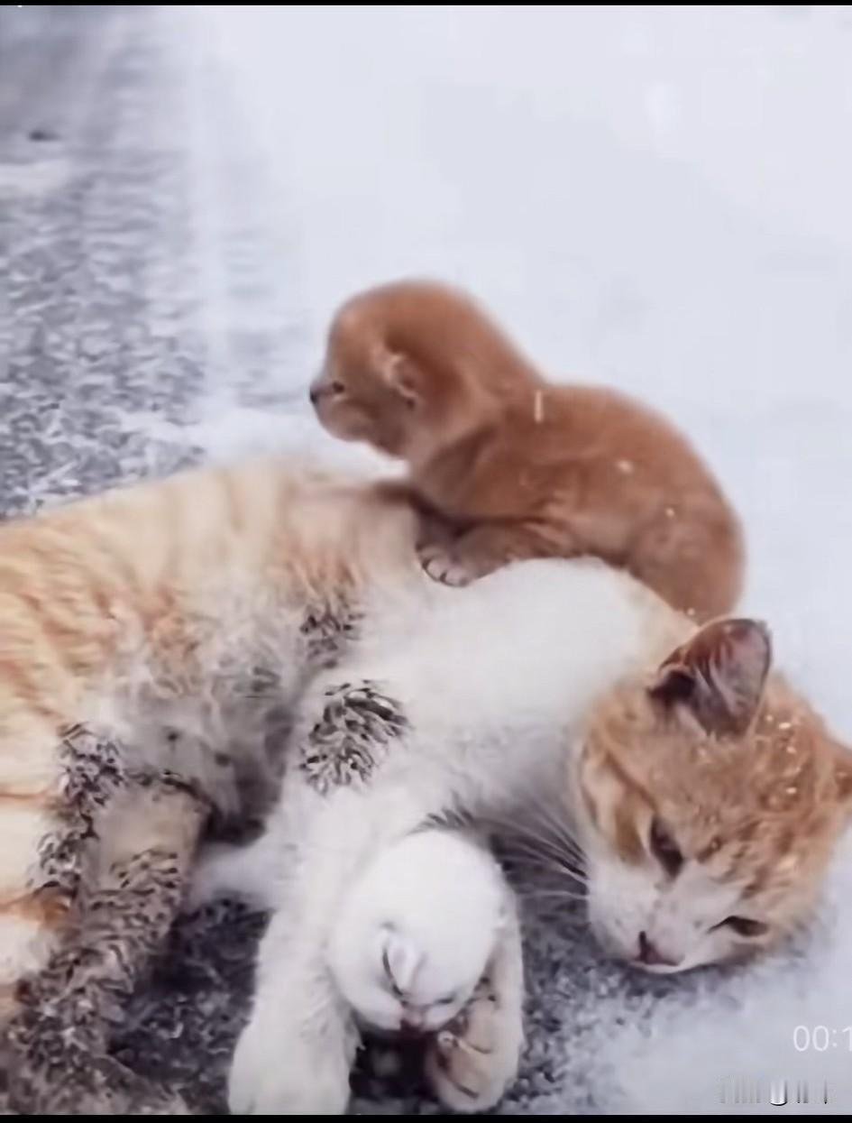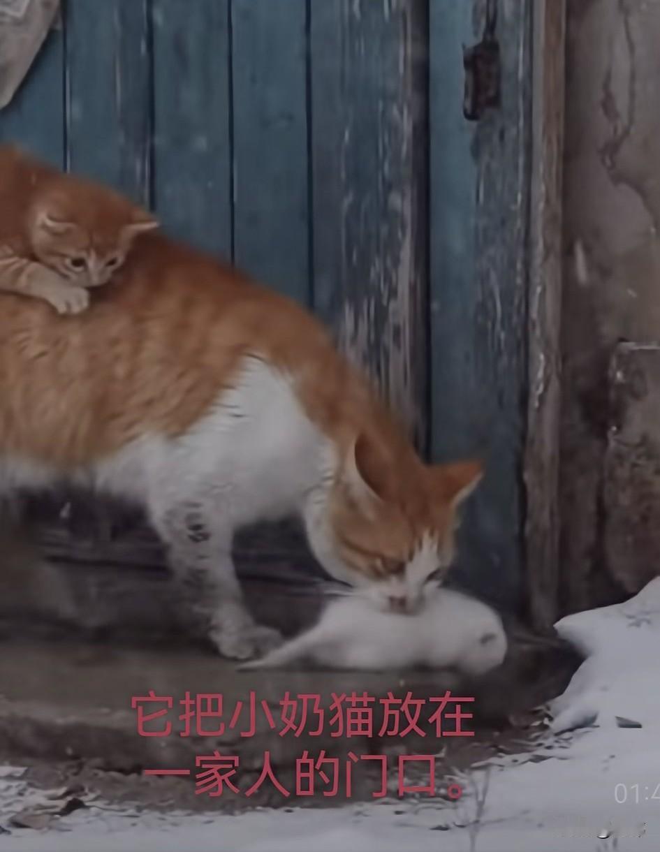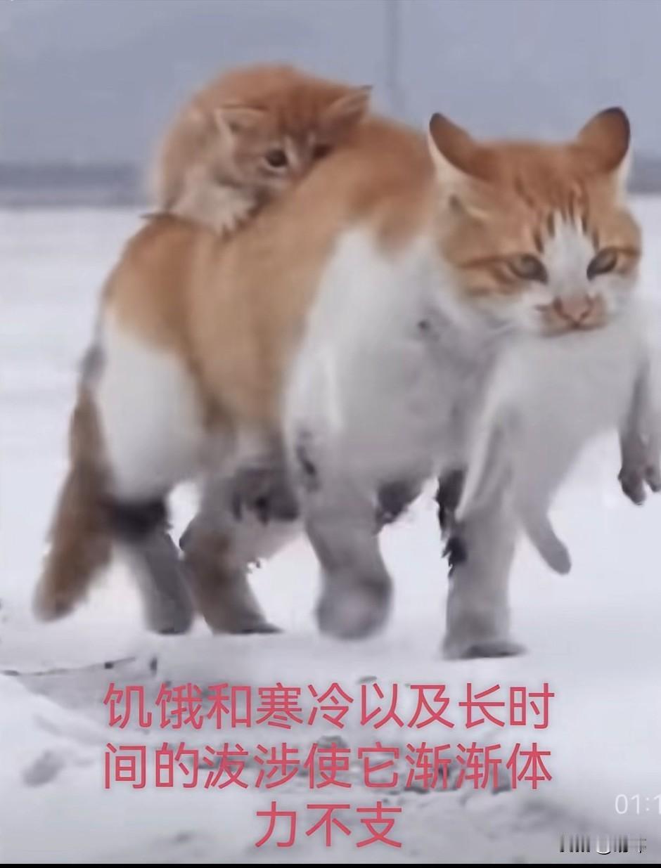 泪目了!由于暴风雪的侵袭,一只流浪猫妈妈的一个孩子得了病,它想到有许多好心的人类或许能帮忙救助它们,于是它嘴里叼着奄奄一息的小白猫,背上驮着小花猫去找人帮忙,它在暴风雪里走了好久,终于找到了一户人家,它把小白猫放在门口,然后用爪子敲敲门,可是这家主人残忍的拒绝了它。 它只好继续带着孩子们去寻求人类的帮助,可饥饿和寒冷以及长时间的跋涉使它渐渐体力不支倒在了马路旁边,这时候小花猫绝望的哀嚎着,为了妈妈和妹妹,它必须冒着生命危险搏一搏去寻求帮助,幸运的是它真的拦下了一辆车,一位善良的小姐姐下车查看它,然后要带它上车走,可它却拼命大叫,然后朝妈妈的方向跑,小姐姐顿时明白它在寻求她的帮助,终于在它的带路下,小姐姐看到了昏迷的猫妈妈和小白猫。 最终小姐姐把它们带去宠物医院治疗,幸运的是经过治疗,它们一家都恢复了健康。这是母爱亲情和善良的胜利!