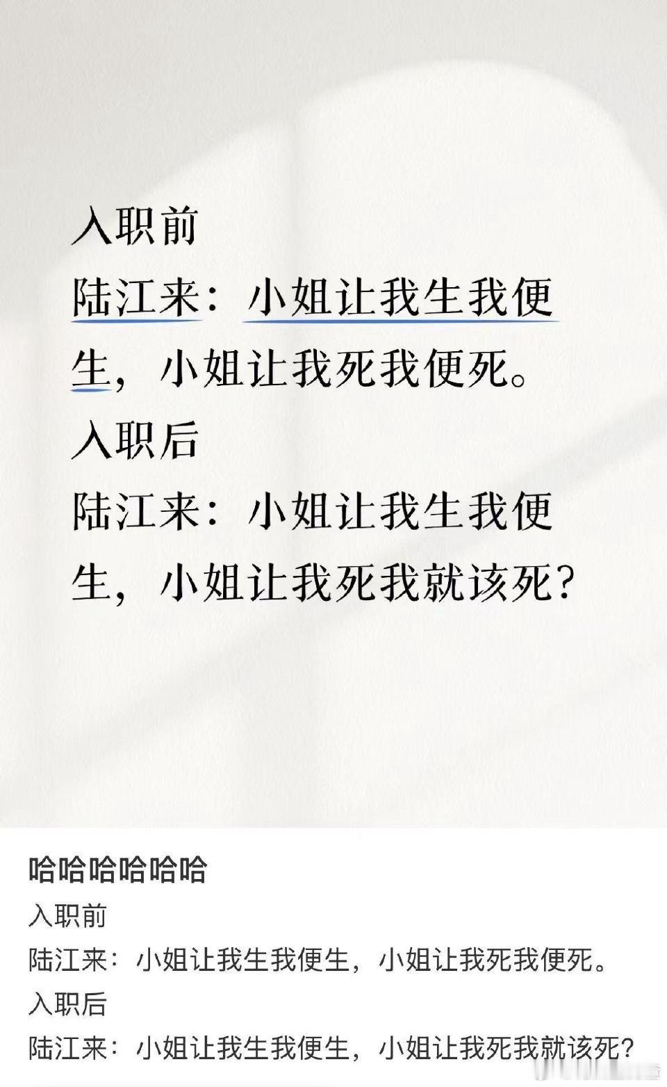 玉茗茶骨完全演我入职前后 陆江来这变脸术我给满分!入职荣府前对荣善宝生死听令,入职后直接硬气反问不忍我送死,打工人同款求职赴汤蹈火,上班摆烂怼人,茶咪在职场混得风生水起太绝!