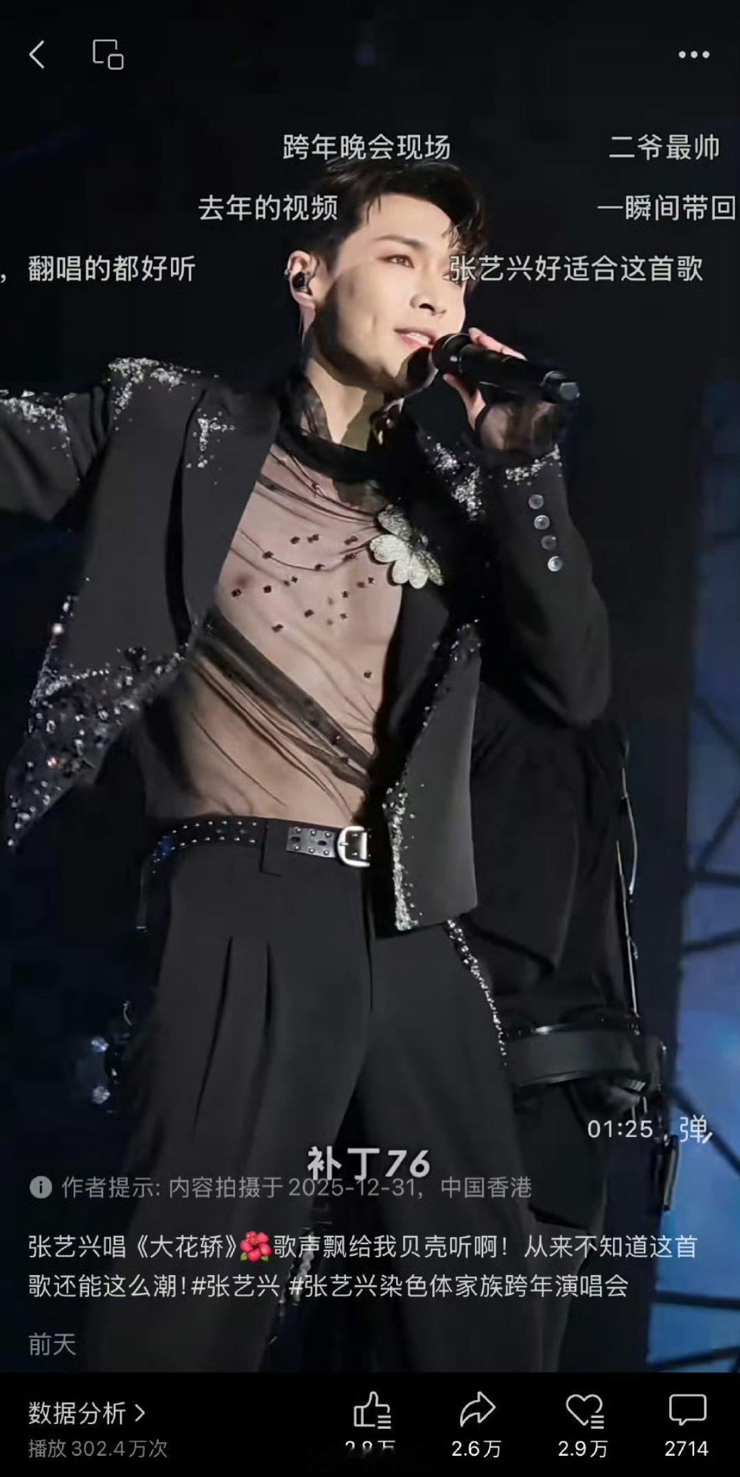突然发现张艺兴的《大花轿》播放量出奇的高啊,在视频号的播放量达到了300w+,而在dy上的播放量直接达到了700w+,这个数据是不是很耐打了呢?