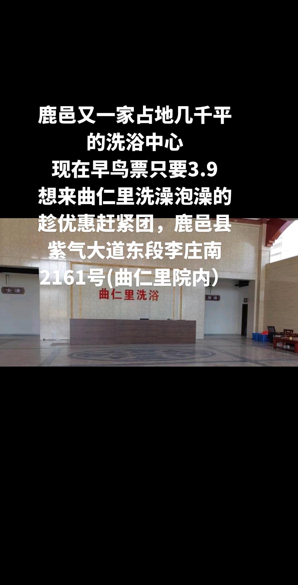 现在早鸟票只要3.9,想来曲仁里洗澡泡澡的趁优惠赶紧团,鹿邑县紫气大道...