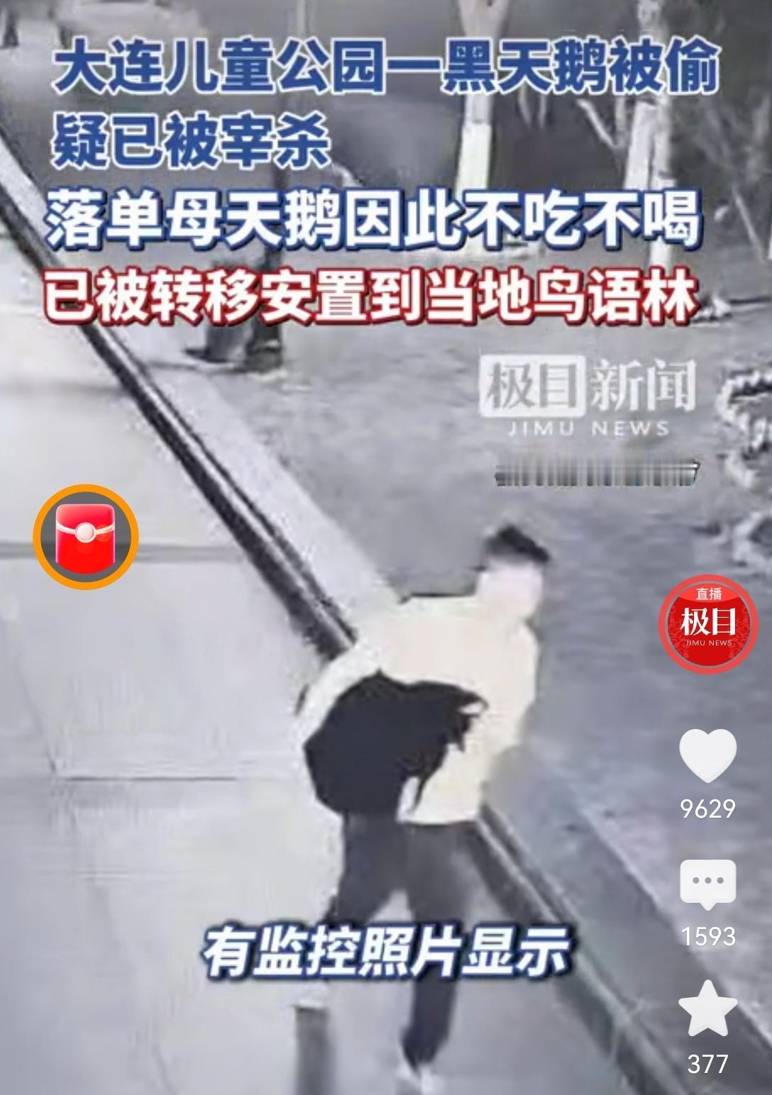 [可怜]大连儿童公园竟然出现坏人,把黑天鹅偷走,疑似被害(大概率是为了吃“天鹅肉[发怒]),黑天鹅一夫一妻,另一只已经拒绝进食,已送专业机构抢救[泣不成声]仔细一查,黑天鹅不是保护动物,但价值肯定5000块以上,能够构成盗窃罪,必须追究这个坏人的刑事责任才行[打脸] 当年,重庆渡区的“明星鱼”“莽子”也是被坏人偷去杀害了,竟然因为是“普通鲤鱼”,价值有限,没有追究刑责[思考]我个人一直认为,这种“明星动物”是具有文旅价值的,应该要专门评估才对,价值远高于“按斤论价”[发怒]对这些坏人,不重锤,不能以儆效尤