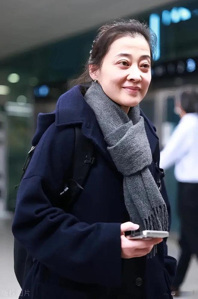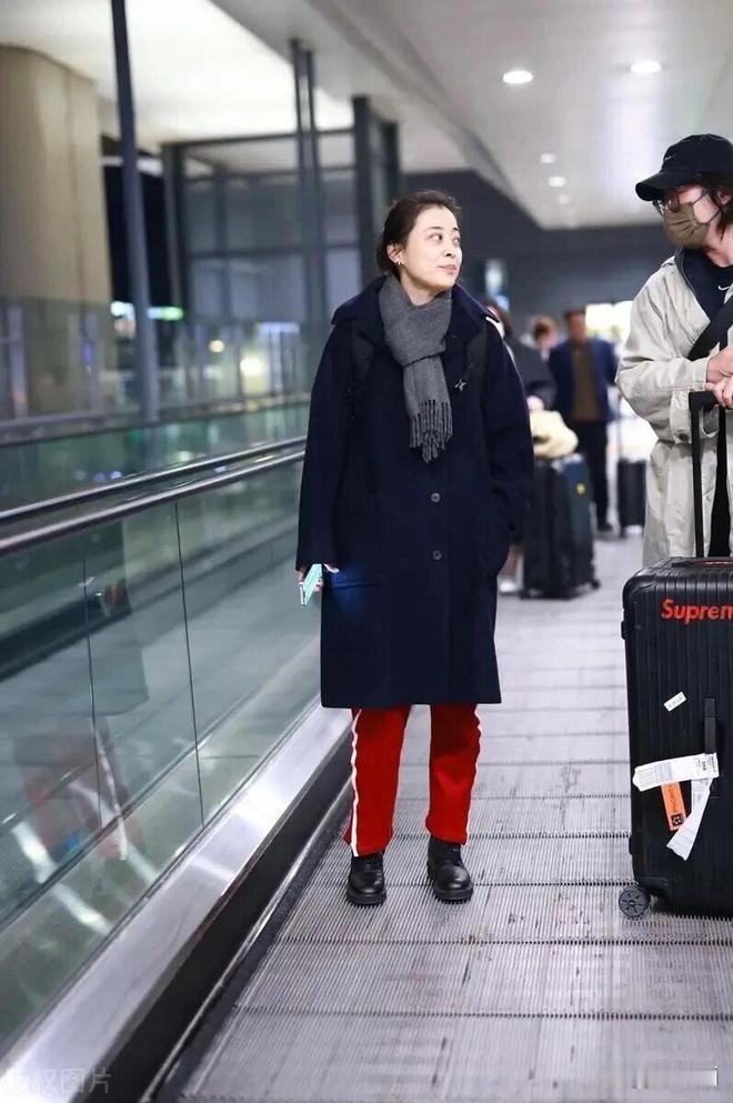 被50岁“梅婷”的中年穿搭惊艳了!穿藏蓝大衣+红裤子+马丁靴,时髦洋气又高级!