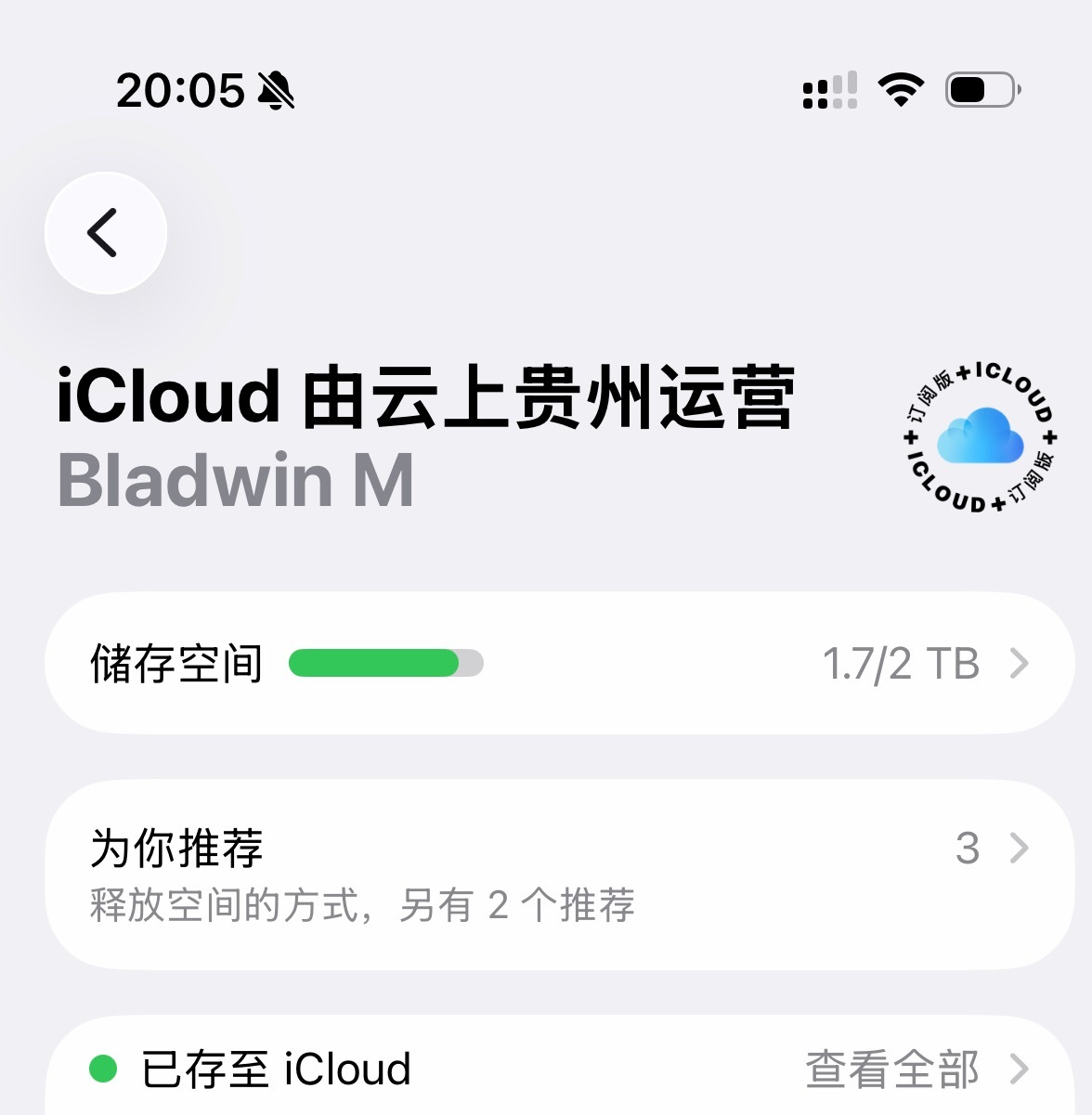 2T的iCloud云空间用了1.7 T了,你们呢?这东西一旦用了就再也回不去了,有一说一,68一个月还是挺贵的,但是习惯一旦养成就只能乖乖付费了。你们总说苹果产品贵,太赚钱了,实际苹果云服务、AppStore、Apple Music 一点不比苹果硬件设备赚的少。