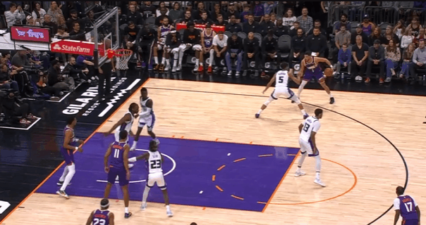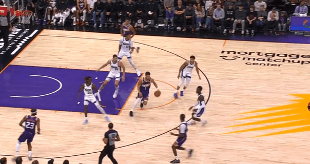逐帧拆解:德文-布克技术细节解析,全场最高33分率队取胜图1抓早攻和马威发动边路挡拆,借助掩护抢出身位优势后,行进间利用辅助手维持身位优势的同时往篮下碾,连续两次沉肩支肘强对抗撞开防守人,迅速收回前脚完成“脚步重置”后出手后仰中投。图2,LOGO位置发动挡拆,借助掩护将德罗赞卡在身后,面对延误至三分线的尤班行进间利用节奏向前行进,行进至肘区小停顿,等尤班回身找马威的瞬间立即加速启动直杀篮下上篮得手。慢动作细节呈现:图3。图4转换进攻点到尤班错位,迂回至三分线后右脚蹬地上步迅速完成180°转身,同时将球换到左手,晃飞尤班后立即衔接炸球撤步三分。慢动作细节呈现:图5。图6胯下衔接后脚的挖步启动,佯装启动突破,实则后脚上步蹬地发力,衔接炸球横撤步中距离。慢动作细节呈现:图7。图8接球后借吉莱斯皮掩护点到阿丘瓦错位,下球后顺步启动右路突破,行进间急停晃飞防守人后迅速衔接胯下拉回撤步后仰中投,稳稳命中。慢动作细节呈现:图9。NBA