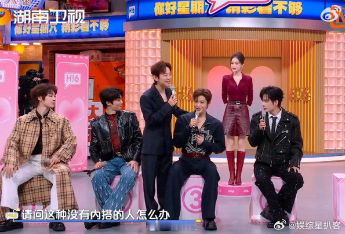 娜扎一下哄了侯明昊丁程鑫两个人 组队环节被问借外套,侯明昊和丁程鑫同时回头,娜扎选小丁后立刻解释小侯没内搭,两人都被照顾得明明白白~你好星期六