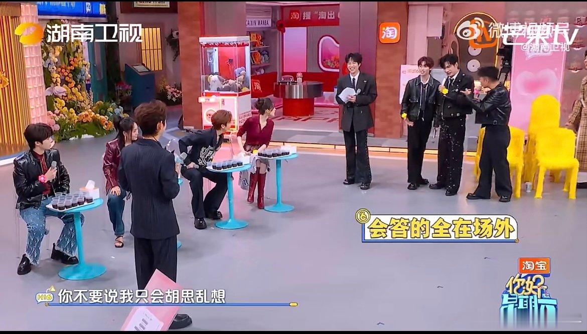 陈立农赶鸭子上架奈何真不会 “A 歌 B 唱” 游戏环节笑不活了!陈立农听完歌曲直接一脸懵,全靠场外队友远程支援,赶鸭子上架唱了一句《找自己》,下一秒就因记不住词大喊 “我不会”~你好星期六