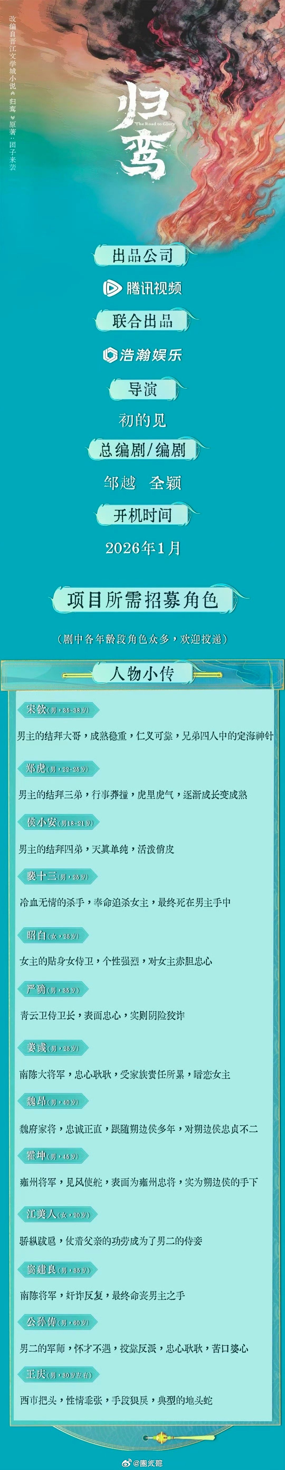 张凌赫归鸾开机预热又是羡慕粉丝和观众的一天啊,张凌赫终于要进组了,电视剧《归鸾》开机预热,张凌赫和林允首次合作,就是说这也是张凌赫出道以来的首部大男主剧,阵容强大,侯燥开机啦~张凌赫林允归鸾1月9号开机