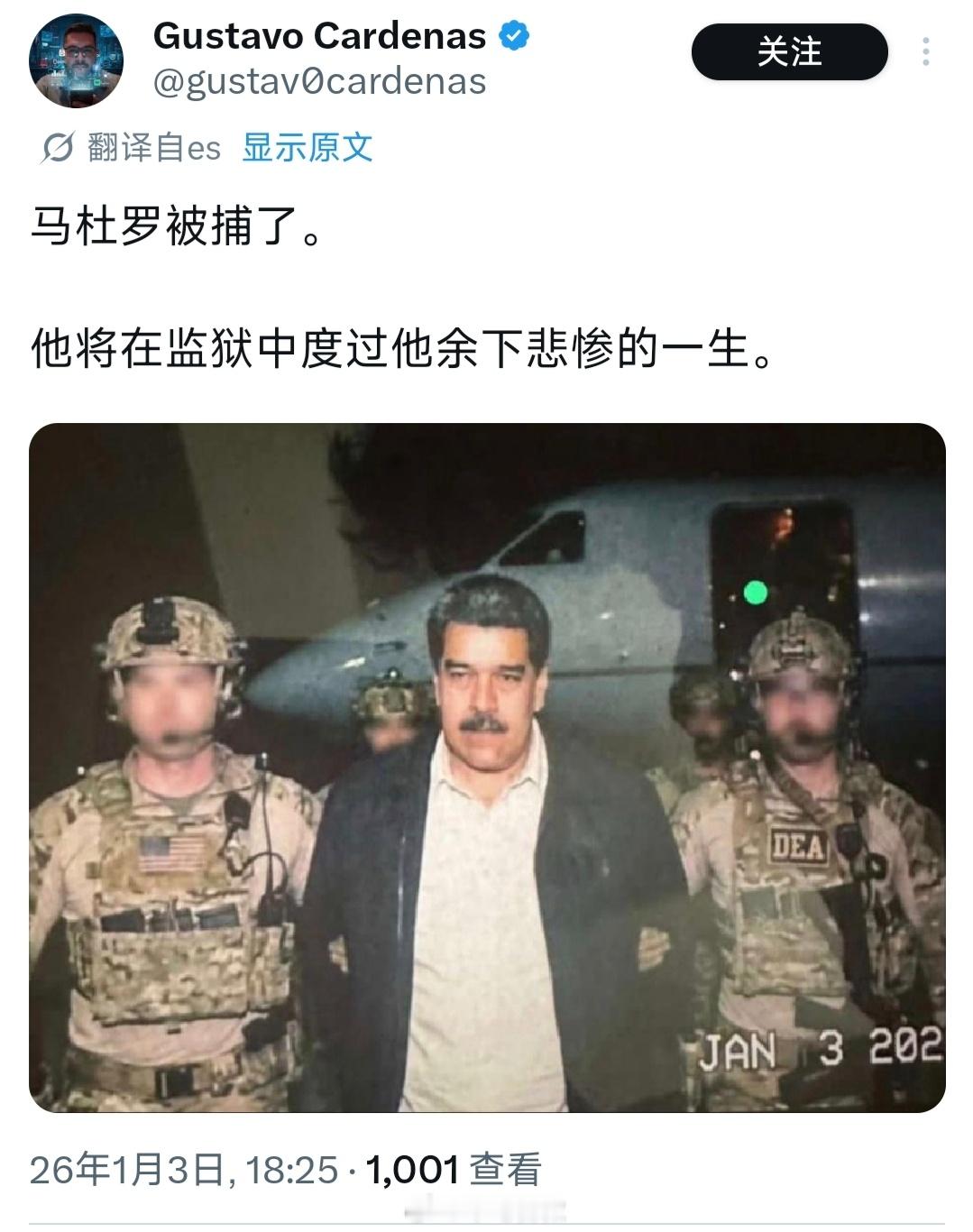 疑似马杜罗被美抓获照曝光 照片不太像真的,但话题下有些人确实嗨了,仿佛美国不是在入侵他国。那些曾经高喊“荣耀属于乌克兰”的人们,再次唱起了美国的赞歌