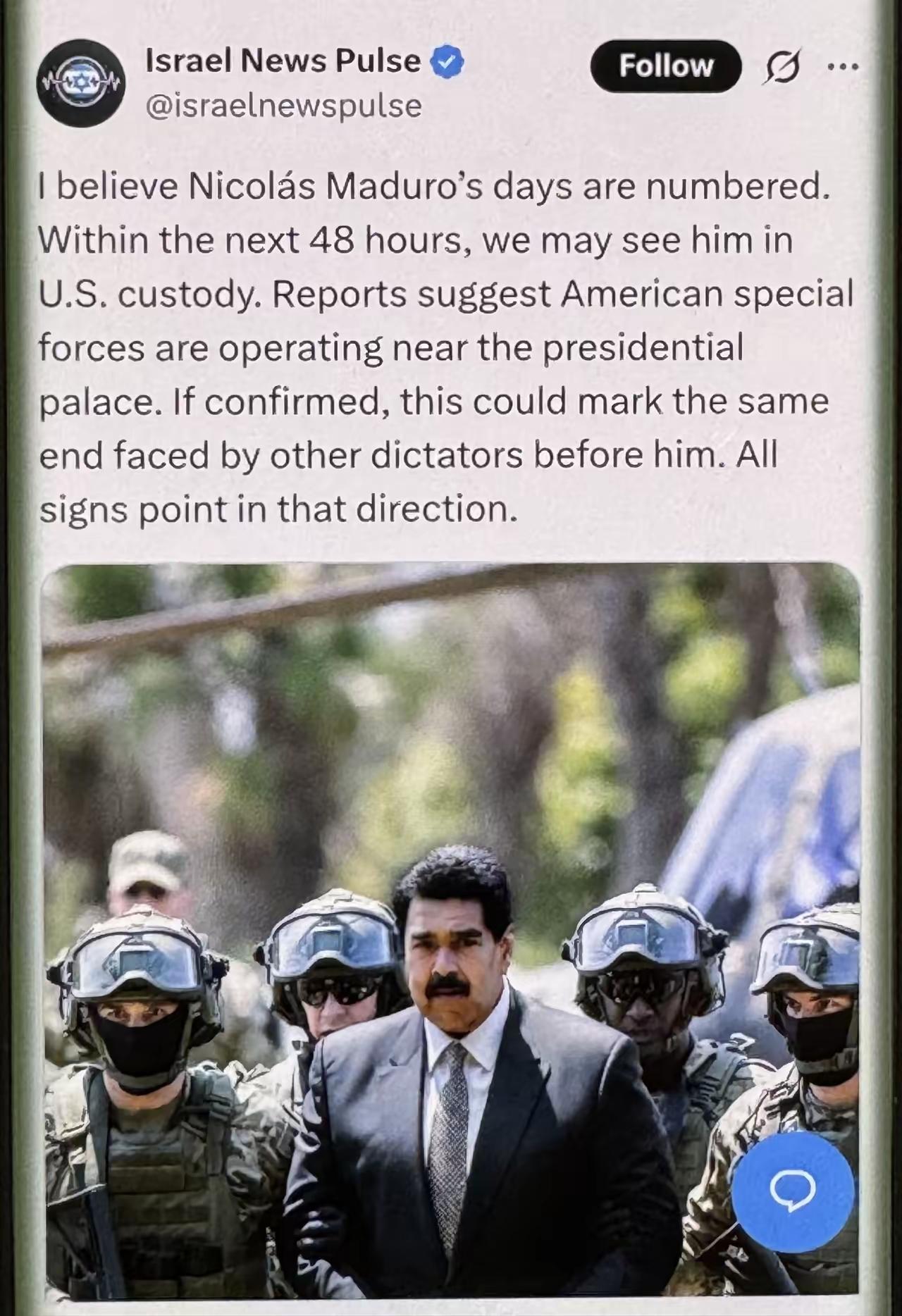 美国对委内瑞拉展开活动还不到三个小时,就把委内瑞拉总统给抓了。 看看这段新闻,1月3号,美国总统特朗普称,美方已成功对委内瑞拉实施打击,抓获委内瑞拉总统马杜罗及其夫人,并带离委内瑞拉。 此次逮捕马杜罗的行动由美军三角洲特种部队执行。 这真的是奇怪。美国可以在外国抓捕外国总统,那外国总统的保镖跑哪去了? 越是不文明的小国家,总统的安保越好,总统的保镖卫队都能有上百人甚至上千人,而且总统的行踪很难有人知道,有的总统有几十个住处,每天都住不同的地方。 贫穷限制了我的想象力,美国特种兵在外国抓外国总统就这么容易? 那抓洪森也不过是探囊取物吧。 那当年为什么美国那么反对巴沙尔,却不在叙利亚抓巴沙尔? 要是抓了巴沙尔,就不用十几年内战,也不会有朱拉尼这基地分子的崛起了。