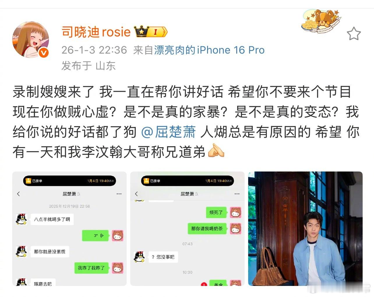 屈楚萧把司晓迪拉黑了司晓迪打假排名