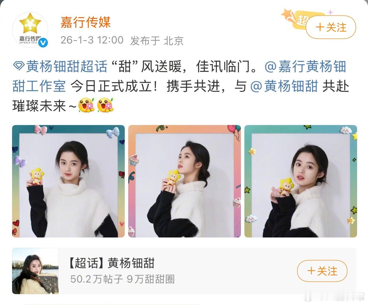 嘉行给黄杨钿甜开工作室了黄杨钿甜成立工作室