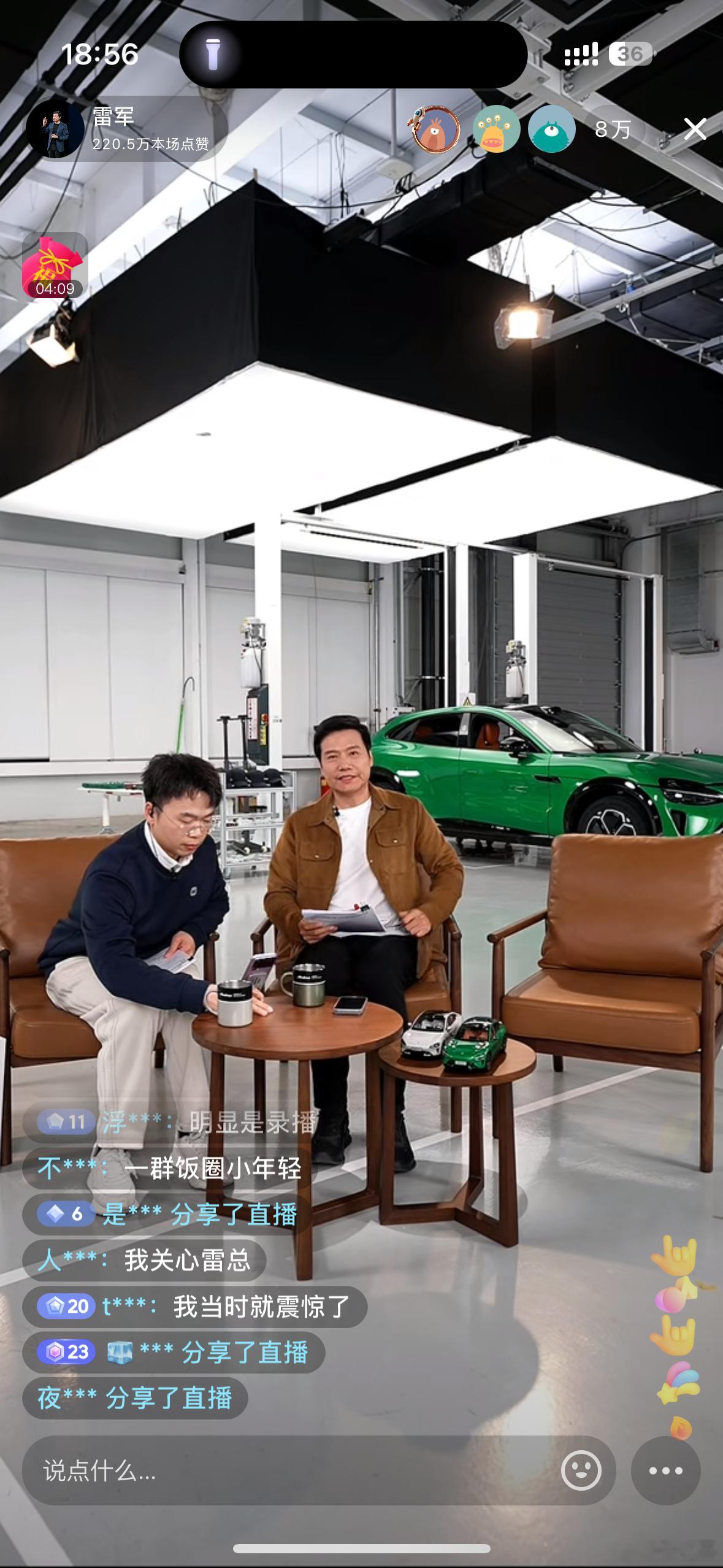 我刚一进直播间,雷总就赶紧来了。可以可以。