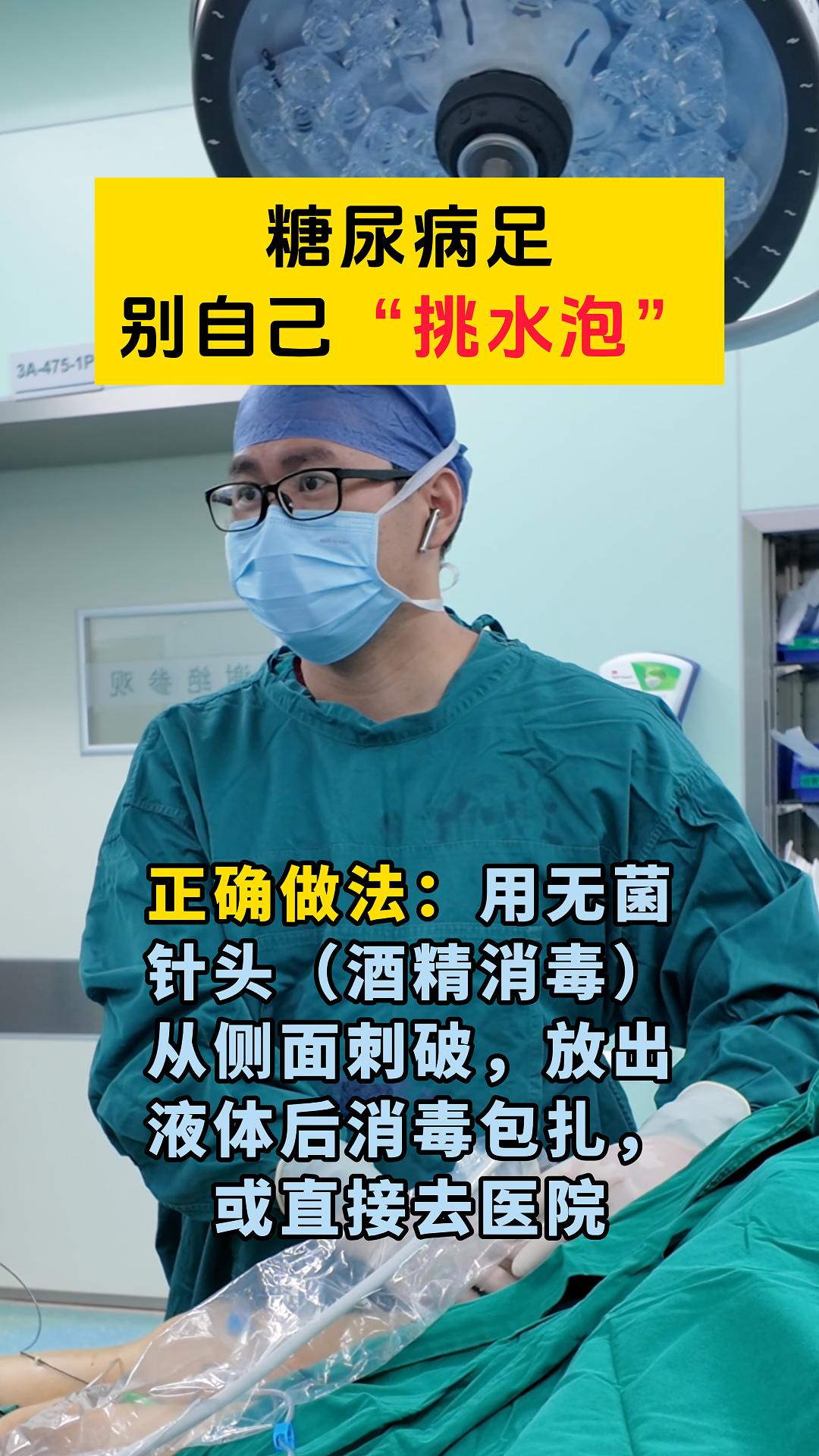 糖尿病足别自己“挑水泡”。糖友脚上水泡别乱挑!易感染致深层损伤。