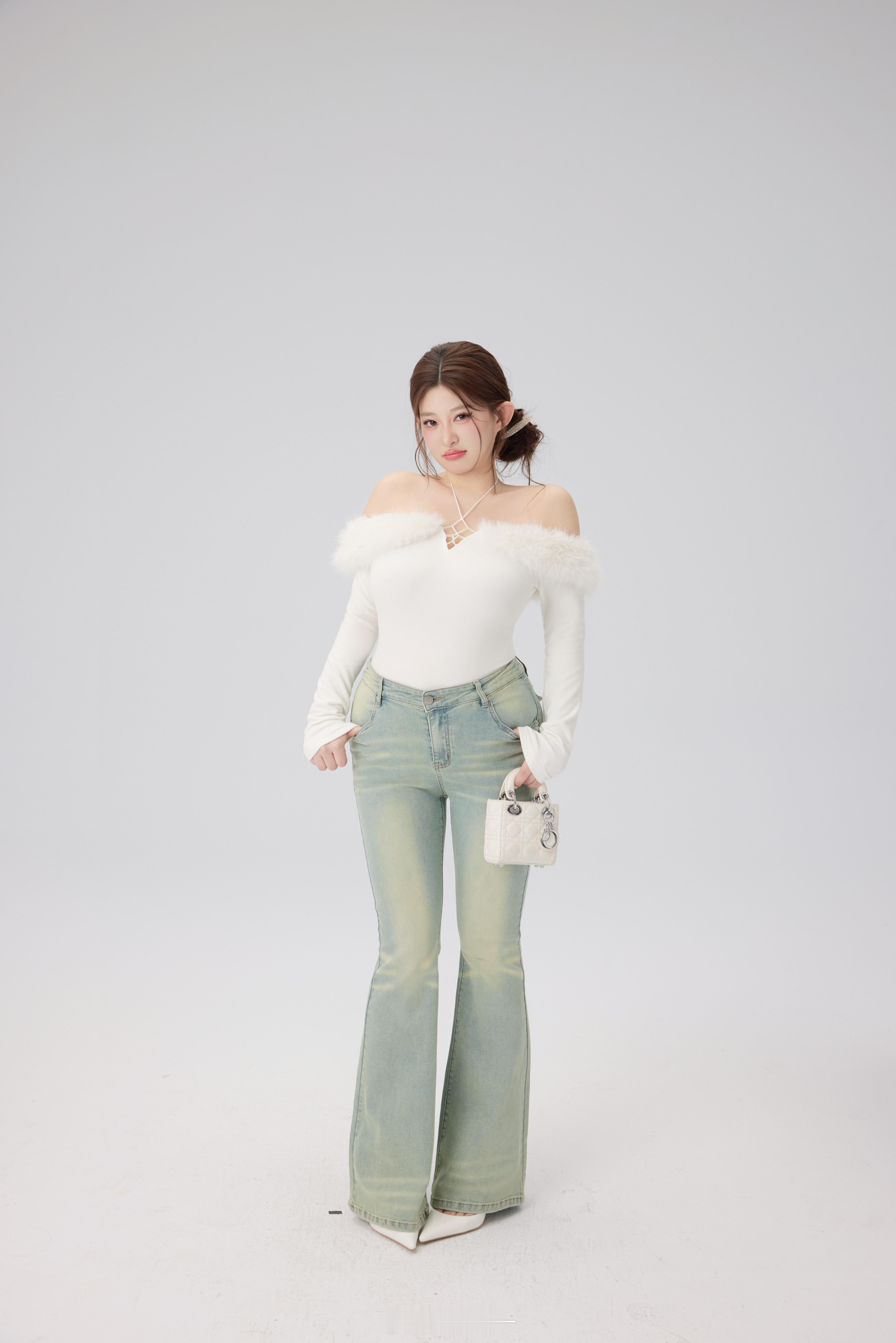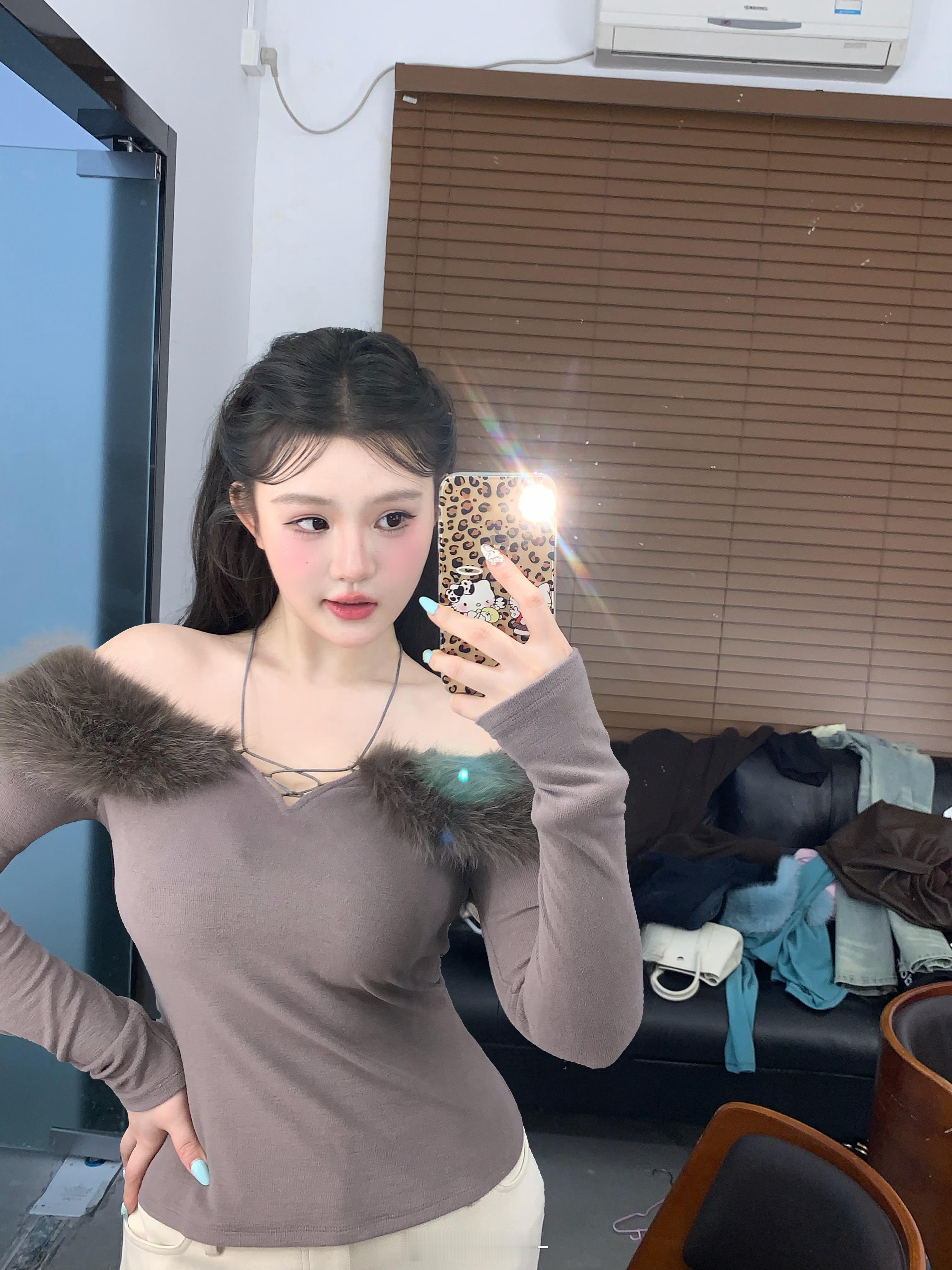 小设计款!!!纯欲天花板“妲己Tee”🦊双面澳绒磨绒的面料是换季刚需☀️!!!软乎乎的触感贴身穿超舒服💨💨奶油白像融化的冬日奶油 温柔又纯欲🥛灰紫色款则多了几分清冷感^ ^喜欢亮色的老婆一定要买布鲁蓝 都巨美!!!一字肩的毛绒边边轻轻贴在肩头谁能拒绝啊啊啊