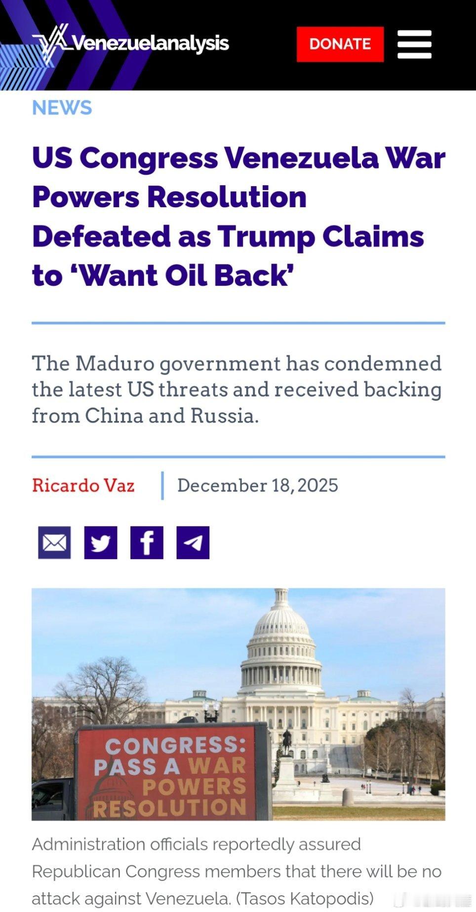 烽火问鼎计划 美国国会通过的“委内瑞拉战争权力决议案”遭否决,特朗普宣称“要夺回石油资源”(委瑞内拉分析网)