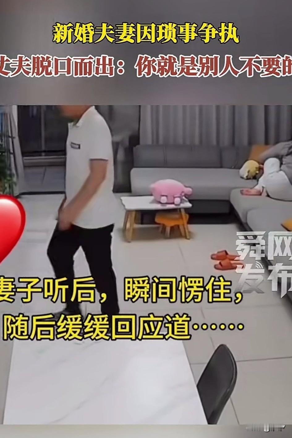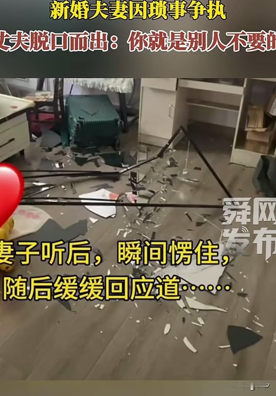 新婚夫妻因为猥琐事儿争吵, 丈夫脱口而出你就是别人不要的, 妻子听到后瞬间愣住, 随后缓缓回应的滚吧! 男子穿上衣服, 直接摔门而去, 只留下了在沙发上哭泣的妻子, 两个人是相亲认识的, 男子由于年龄大了, 一直没有找到合适的, 本来都想孤独一生了, 奈何又被别人说了现在的妻子, 现在的妻子是大龄剩女, 本来眼光非常高, 奈何35岁了也没有找到合适的, 她的家人催着她结婚, 没有办法了她就给了男人机会, 两个人没有任何感情, 只为了完成人生的任务, 于是就在家人的撮合下结了婚, 妻子嫌弃他挣钱少, 还不如她闺蜜的老公, 人家老公一个月2万月薪, 你才挣5000元, 真的是没用, 每天都是抱怨自己的丈夫, 自己在家,家务也不做, 男人下班还要给他做饭, 这天做的饭不合她的胃口, 就被气死一顿数落, 实在气不过的男子就说了这句话, 两人因此大吵了起来, 丈夫走后,妻子把家砸了, 觉得自己嫁给这个老公就是错误, 这个老公根本配不上她, 这就是娶大龄剩女的家庭生活, 看完之后你还敢接盘吗? 婚姻的苦恼分享 夫妻间吵架 情侣夫妻吵架 丈夫怒斥要离婚 夫妻不雅行为 夫妻吵架台词 丈夫大闹