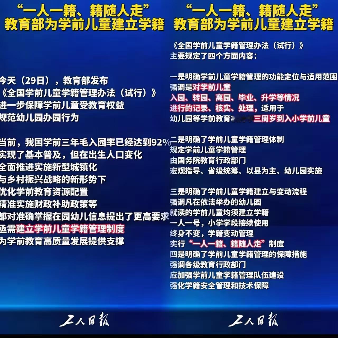 2026年学前学籍新规太硬核!3岁入园即建“一人一号”终身学籍,小学直接接续使用,无证“家庭作坊”幼儿园彻底凉了——没资质录不了系统,孩子读了也白搭,这波整治太解气。 喜的是野鸡园被清退,孩子的安全和教育有了硬保障;愁的是低价竞品消失,学费会不会涨?其实不用慌,新规明确普惠园执行政府指导价,收费有上限,还能享减免。 家长别贪便宜踩坑,选园先查办学资质,2026年可通过国家政务服务平台查学籍。规范办学是大好事,愿每个孩子都能在靠谱园所安心成长~