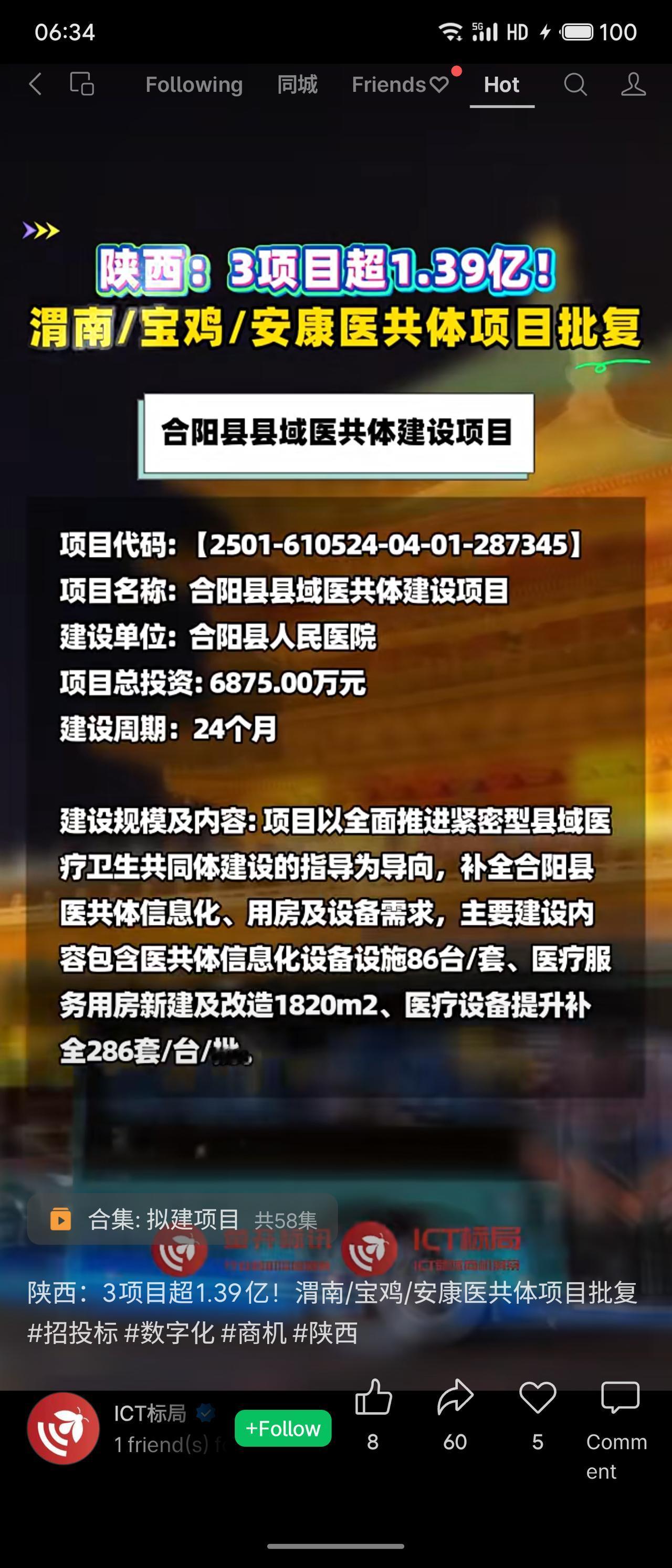 陕西省批复了渭南、宝鸡、安康三地共三个紧密型县域医共体建设项目,总投资超1.39亿元。其中,合阳县项目投资6875万元,用于信息化设备、医疗用房改造及设备提升;扶风县项目投资6350万元,用于基础设施改造、设备购置及一体化信息平台建设;镇坪县项目投资677万元,重点建设信息化协同平台。这些项目旨在通过资源整合与数字化升级,全面提升县域基层医疗服务的协同能力与效率。
