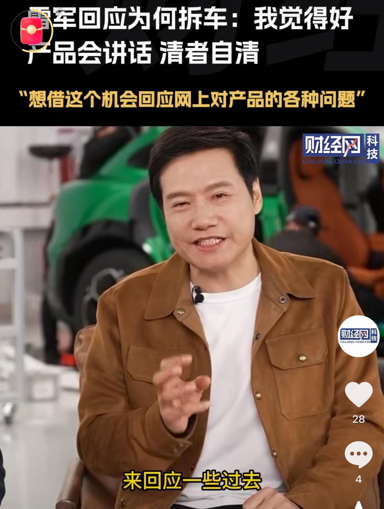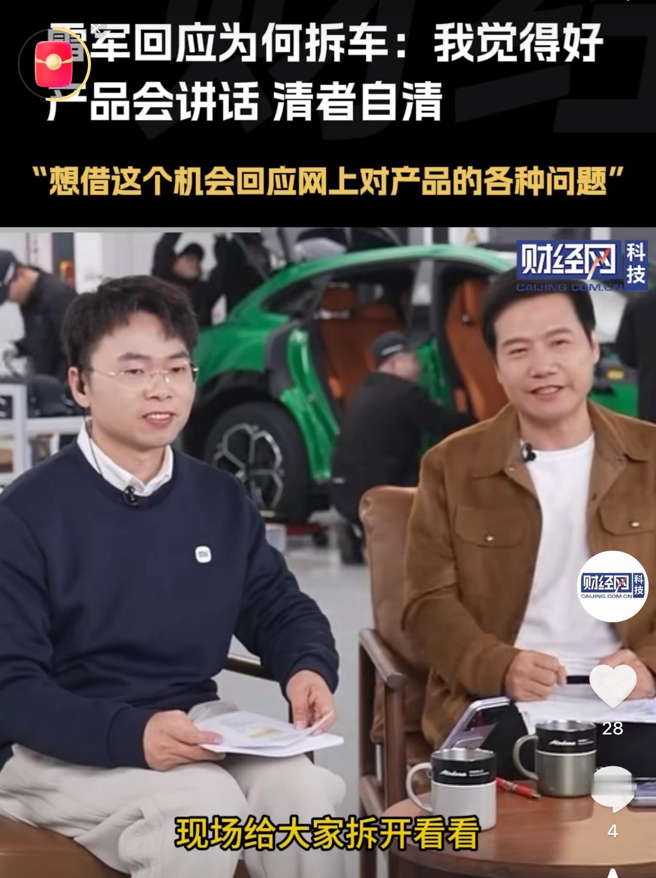 雷军回应为什么要拆车雷军这次算是把话挑明了:既然总被放在放大镜下扒,不如自己推到显微镜下面拆给全国人民看,让质疑的人没话说。小米造车的技术、用料其实都经得起检验,与其解释一百句,不如拆一次。他说这次拆车不仅是回应,更是给全行业出了一道题,谁敢像小米这样把底子亮给大家看?“敢不敢拆”,可能会成为车企以后绕不过的信任考题。说实话,我反倒挺喜欢现在的小米,海报越来越干脆,字大了、话少了、营销味也淡了。比起花活儿,小米现在更像是用行动和真材实料说话的那种品牌,这种转变挺让人期待后续。