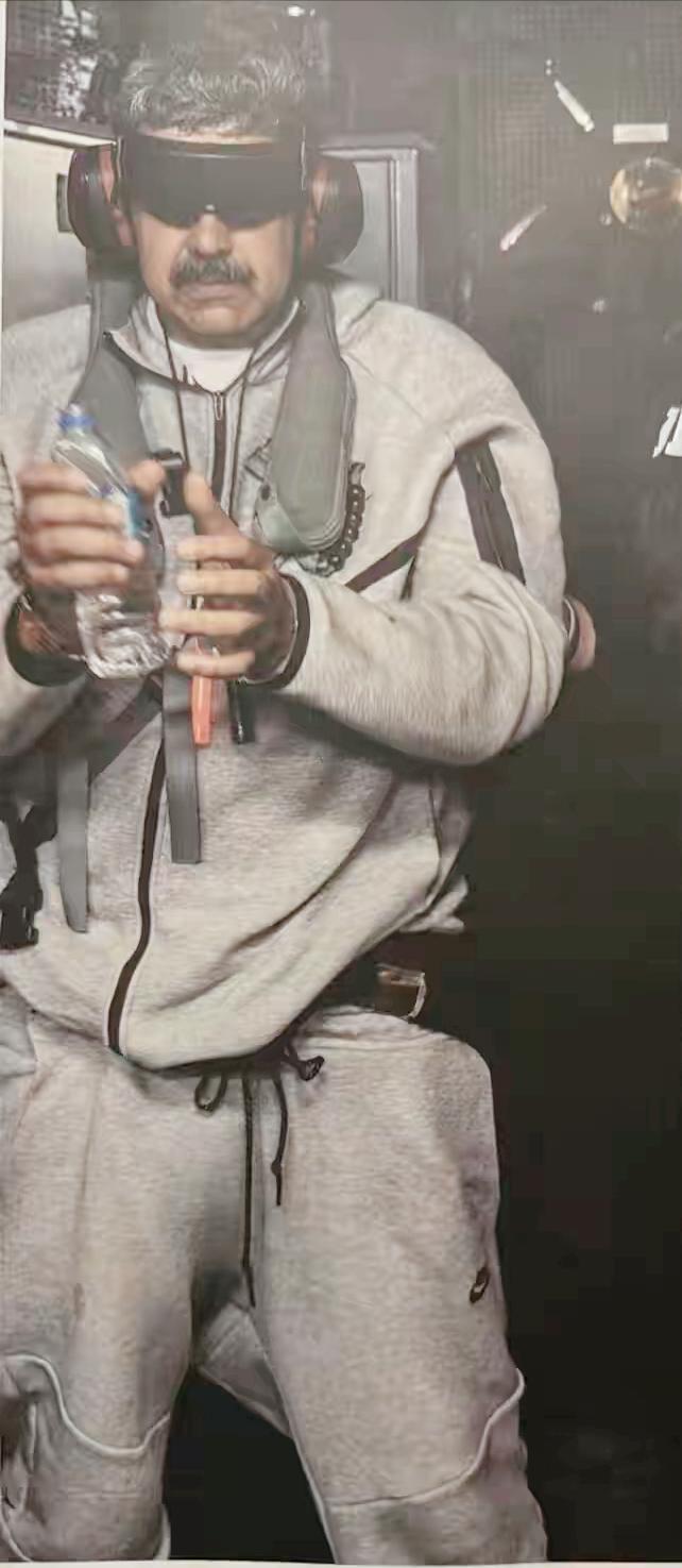 特朗普发布马杜罗被抓捕后的照片。 3日凌晨,委内瑞拉总统马杜罗在睡梦中被美军特种部队拖出,他们撬开了官邸的铁门,对马杜罗夫妇实施了抓捕。 几小时后,他们夫妇被带到了美军“硫磺岛”号的军舰上,随即特朗普向全世界公开了马杜罗在军舰上的照片。 照片中马杜罗身穿灰色运动装,双臂被带上了手铐,眼睛被黑布遮住,面部表情似乎带着恐慌与无奈,他将被带到纽约接受起诉审判。 美国又给游戏加了新的玩法,又给世界当了榜样!