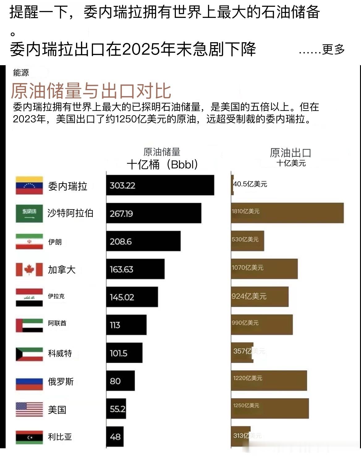 委内瑞拉民众欢呼背后的真相全球原油储量第一国,居然老百姓没饭吃,老师,医生一个月收入几十美元… 看看下面全球十大原油储量大国的比较凯丰基本面拉丁宏观经济