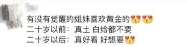 有没有觉醒的姐妹喜欢黄金的 二十岁以前:真土白给都不要 二十岁以后:真好看 好想要