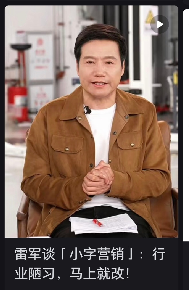 雷军确认小字营销要改雷总这次直播是直击问题啊,小字营销也是搬上台面来了。行业陋习,马上就改。