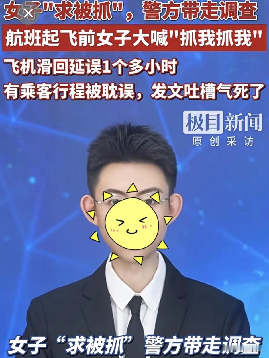 进了跑道的飞机被迫滑回,只因女子大喊“抓我抓我抓我”!乘客气炸:起飞前她突然“嗨”了? 飞机进了跑道,马上就要起飞,突然机舱里炸出一嗓子:“抓我呀!抓我!抓我!”——今天一早,天津飞昆明的GS7855航班上,乘客们全都懵了。 有乘客拍下的视频里,一名戴帽子口罩的女子情绪激动,对着安全员大喊:“你不是说你是安全员要抓我吗?” 旁边有人劝着,说这女的一过安检就不对劲。结果,飞机滑了一半又掉头回去,警察上来把人带走了。全机旅客硬生生被耽误了一个多小时。 “气死了!”有旅客在网上直接吐槽。原本8点05分起飞,最后9点26分才走成。 天津航空客服证实:航班延误是“旅客原因”,但具体细节没多说。机场公安那边也低调,只派了派出所处理,详情不便透露。 网友评论画风逐渐跑偏: “这是想免费警车接送想疯了吧?” “安全员:这辈子没听过这种要求。” “可能她只是突然想起了什么刺激的剧情……” “这要求,必须抓,还要上黑名单,看她还能如此优秀不!” “无论当事人如何“解释”,必须对自己的言行负责。” “无论什么原因,都不是撒泼发癫的理由!” “拉入高铁航空黑名单,这种人少出门吧!” “怎么没人要求打我打我打我啊?” “必须满足她!” “判刑,否则都效仿搞出名秀!” 坐飞机最怕这种“突发表演”,眼看就要上天,结果一嗓子回到候机楼。真是人在机舱坐,瓜从天上来。 出门在外,还是淡定一点好,不然一不小心就成了全机旅客的“债主”啊…… 素材来源:极目新闻,侵联删!