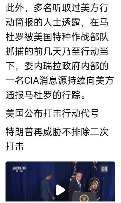 果然,堡垒还是从内部攻破的。根据多名听取过美方行动简报大人士透露,在马杜罗被抓捕的前几天乃至当天,委内瑞拉政府内部的一名CIA消息源持续向美方通报马杜罗的行踪。确实,没有里应外合,美军很难以3小时的光速完成所有行动。 时间回溯到2025年8月,中情局就已悄悄向委内瑞拉派遣秘密团队,这群人的唯一目标,就是摸清马杜罗的生活习惯、出行规律等核心信息,为后续行动搭建情报基础。 当年10月,特朗普正式给中情局开了“绿灯”,允许其在委内瑞拉境内开展秘密行动,这意味着前期的情报收集开始转向实质性的行动规划;到了11月,特朗普进一步批准了针对委内瑞拉的系列行动方案,明确这是中情局与美军联手推进的重点任务。 在整个布局过程中,行动时间曾多次变动。 最初美方计划在圣诞节动手,却因为要优先打击尼日利亚境内的极端组织而搁置;之后又因为天气条件不达标,多次取消行动。 直到1月3日天气转好,最终的行动命令才正式下达。 美方对行动时机的反复斟酌,足见其对成功率的极致追求,但这所有的筹备工作,若没有内部消息源的支撑,都将沦为空谈。 毕竟,再周密的计划,也需要精准的情报来落地,而这名内鬼,正是美方最可靠的情报来源。 美方构建的情报网络,是典型的“内外结合”模式。 除了委内瑞拉政府内部的那名核心眼线,中情局还动用了多架隐形无人机,对委内瑞拉境内实施近乎全天候的空中监控。 但对比之下,内部眼线的价值远胜技术手段——这名眼线与马杜罗关系密切,不仅能日常观察其一举一动,更能在行动的关键节点,精准告知美方马杜罗夫妇的具体位置。 这种“人力+技术”的双重保障,让马杜罗的行踪在美方眼中毫无秘密可言。 更令人警醒的是,这名内鬼并非孤立存在,委内瑞拉高层内部早已滋生出一批通美分子,形成了难以弥补的系统性漏洞。 这些人的存在,让美方的行动少了诸多阻碍,成为其顺利推进的重要助力。 这也再次印证了那句残酷的现实:堡垒往往是从内部被攻破的。 若是没有这样的内部渗透,即便美军筹备得再充分,也很难精准锁定马杜罗的位置,更谈不上快速实施突袭。 1月3日的行动现场,内鬼提供的情报价值被彻底放大。 美军投入的作战力量规模惊人,从西半球20个不同军事基地起飞了150多架飞机,涵盖轰炸机、战斗机、侦察机、直升机等多种机型,构建起密不透风的空中掩护网。 行动按照预设的“空袭清障—地面抓捕”步骤推进。 加拉加斯的蒂乌纳空军基地、国防部周边等多个军事和民用关键目标率先遭到空袭,美军试图通过这种方式制造混乱,同时摧毁委内瑞拉的核心防御设施。 空袭过后,三角洲特种部队直奔马杜罗夫妇在军营内的住所,强行突破了专门设置的钢制大门,在短短几秒钟内就控制了熟睡中的马杜罗夫妇。 从行动启动到马杜罗夫妇被带离委内瑞拉,全程只用了1小时22分;而从行动开始到特朗普召开新闻发布会公布全过程,耗时还不到12小时。 这样的高效与精准,背后离不开内部消息源实时情报的支撑。 毫无疑问,没有这样的里应外合,美军根本不可能以如此惊人的速度完成所有行动环节。 马杜罗夫妇被抓捕后,很快被送上飞机带离委内瑞拉,最终抵达美国纽约斯图尔特空军国民警卫队基地。 相关画面显示,马杜罗身着灰色卫衣,脚上戴着脚镣,在多名联邦探员的包围下走下舷梯进入机库。 之后,他被直升机送往纽约市内完成登记手续,随后转至布鲁克林的大都会拘留中心。 按照美方安排,马杜罗最迟将于1月5日晚间在纽约南区联邦地区法院出庭,面临毒品恐怖主义阴谋罪、可卡因走私阴谋罪等多项指控。 今天的分享到这里就结束了,大家对此事有何看法,欢迎在评论区留言和讨论,感兴趣的可以点击头像加关注,我将每日更新优质内容,我们下期见。