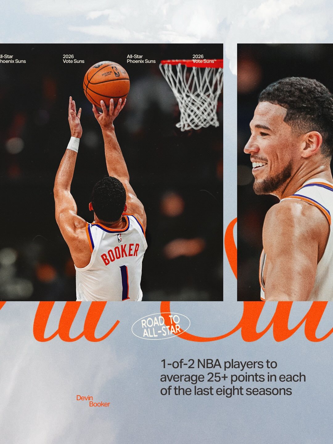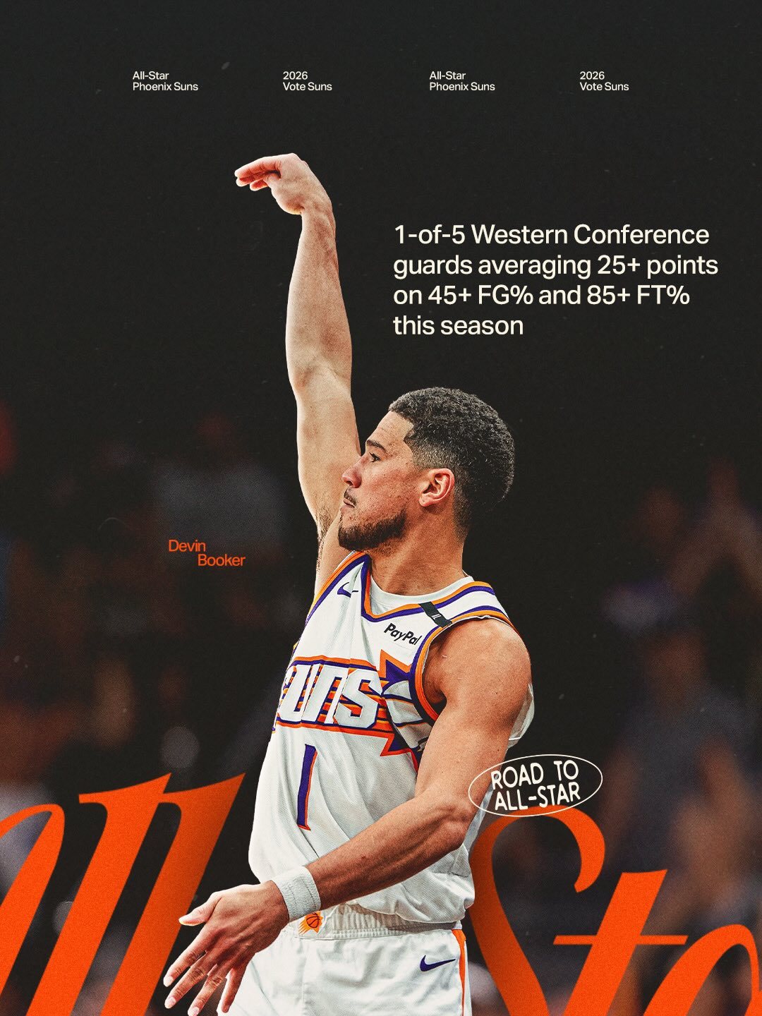 数据不会说谎 🤩德文·布克,全明星级别的表现持续在线👇📊 硬核数据,一眼服气:• 全联盟仅 2 人,连续 8 个赛季 场均 25+ 得分• 西部后卫中,仅 5 人 场均 25+ 得分,同时命中率 45%+ / 罚球 85%+• NBA 仅 12 人 同时位列 得分 & 助攻前 20【为布克投出你的全明星一票】🔗 中文全明星投票链接:网页链接🔗 海外全明星投票链接:网页链接菲尼克斯太阳|旭日东升|2026nba全明星投票