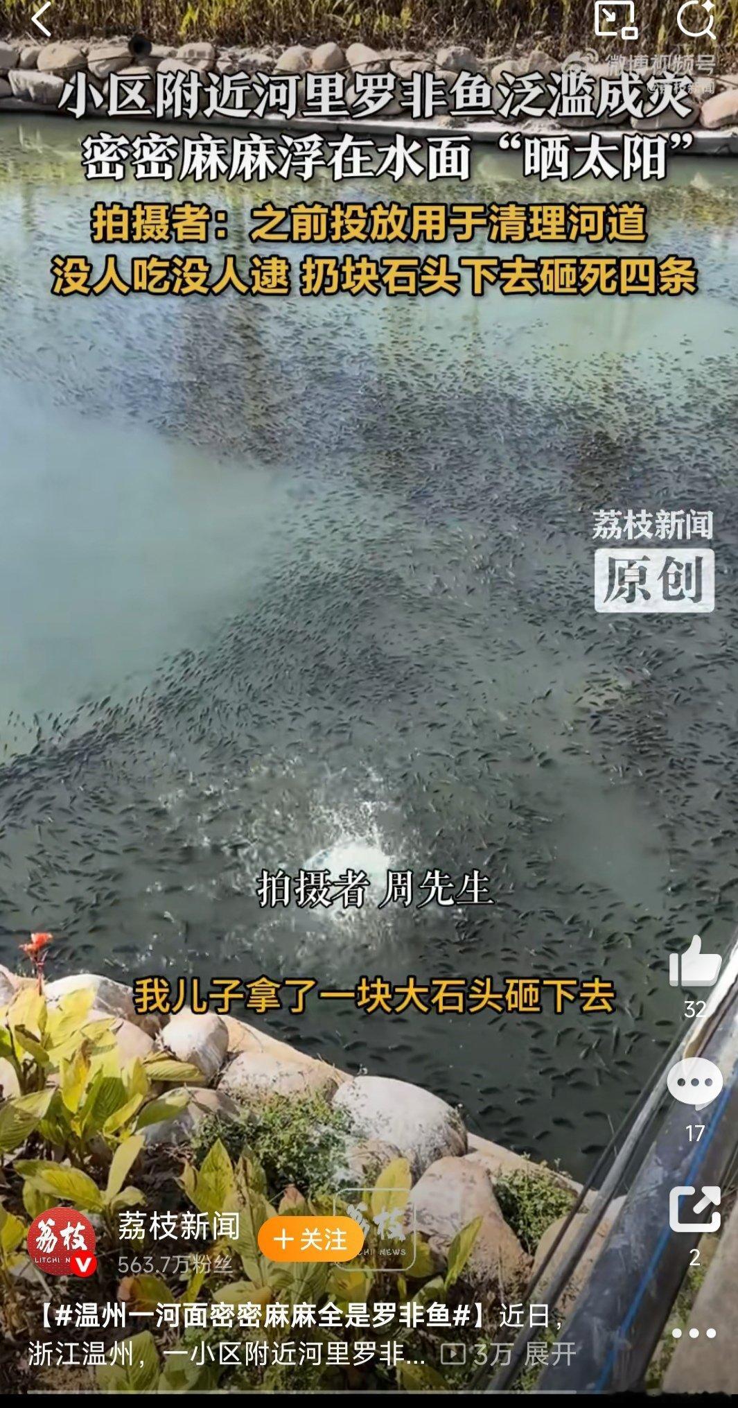 温州一河面密密麻麻全是罗非鱼据说罗非鱼生存的适宜温度是16至38度,怎么这些鱼儿