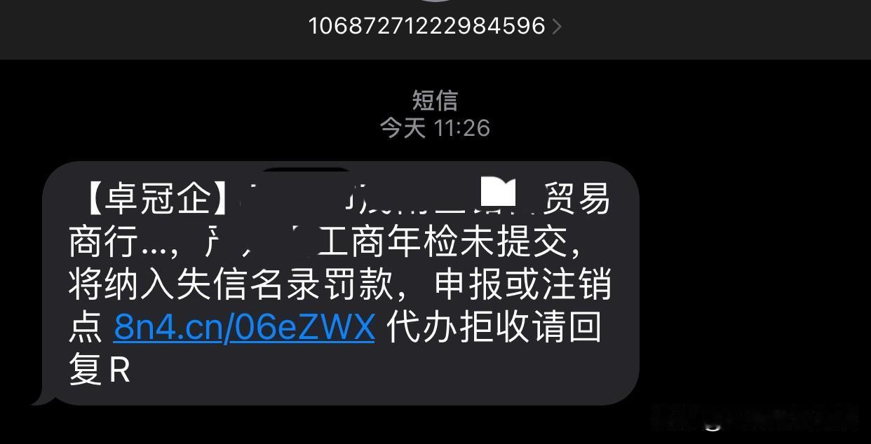 我今天又收到了这样的短信… 【年底捂紧钱包!这条“工商年检”短信,点了就可能丢钱!】 近期应该不少老板都收到此类短信:“您的工商年检未提交,将纳入失信名录并罚款,请点击链接办理…” 其实这是典型诈骗!市场监管部门已取消“年检”,改为“年报”,且绝不会用短信链接收费。凡是带不明链接、索要费用的“官方通知”,一律是骗局! 到年底了这几类金钱陷阱要警惕: 1️⃣ 冒充类诈骗:假冒工商、税务、银行等,以“异常”“过期”为由,诱导点击链接转账。 2️⃣ 虚假转账汇款:谎称代开发票、补贴到账,要求支付手续费或“保证金”。 3️⃣ 密码验证码索要:任何索要银行卡密码、短信验证码的“客服”,都是骗子! ✅ 正确做法: • 企业年报请认准国家企业信用信息公示系统(官网)。 • 所有涉及金钱的操作,务必通过官方渠道、电话或窗口核实。 • 不点陌生链接,不透露密码验证码! 你收到过类似诈骗短信吗?