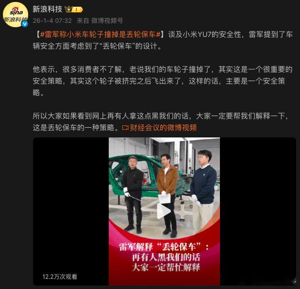 据说日本车有一种吸能技术,用溃缩来吸收撞击能量,保护驾驶员和乘客的安全。小米汽车的丢轮保车技术,已经远远超越了日本车的吸能技术!遥遥领先!