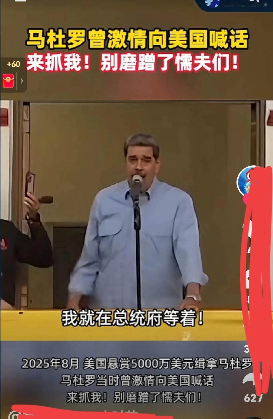 实力不够说大话,只会挨最狠的揍 这回大美丽突袭委国,抓住了大统领马杜罗,让不少人大跌眼镜。其实不光是他们,连当事人恐怕也是万万没想到的。 就在大美丽在外海上秀肌肉,当事人的马总统也没闲着,在总统府内大喊:我就在这里,有本事来抓我呀! 这其实有点搞笑,如果双方实力相当,那也算是另一种秀肌肉的方式。可惜委国内部四分五裂,实力羼弱,那就属于放空炮了。 结果大伙儿也都看到了。