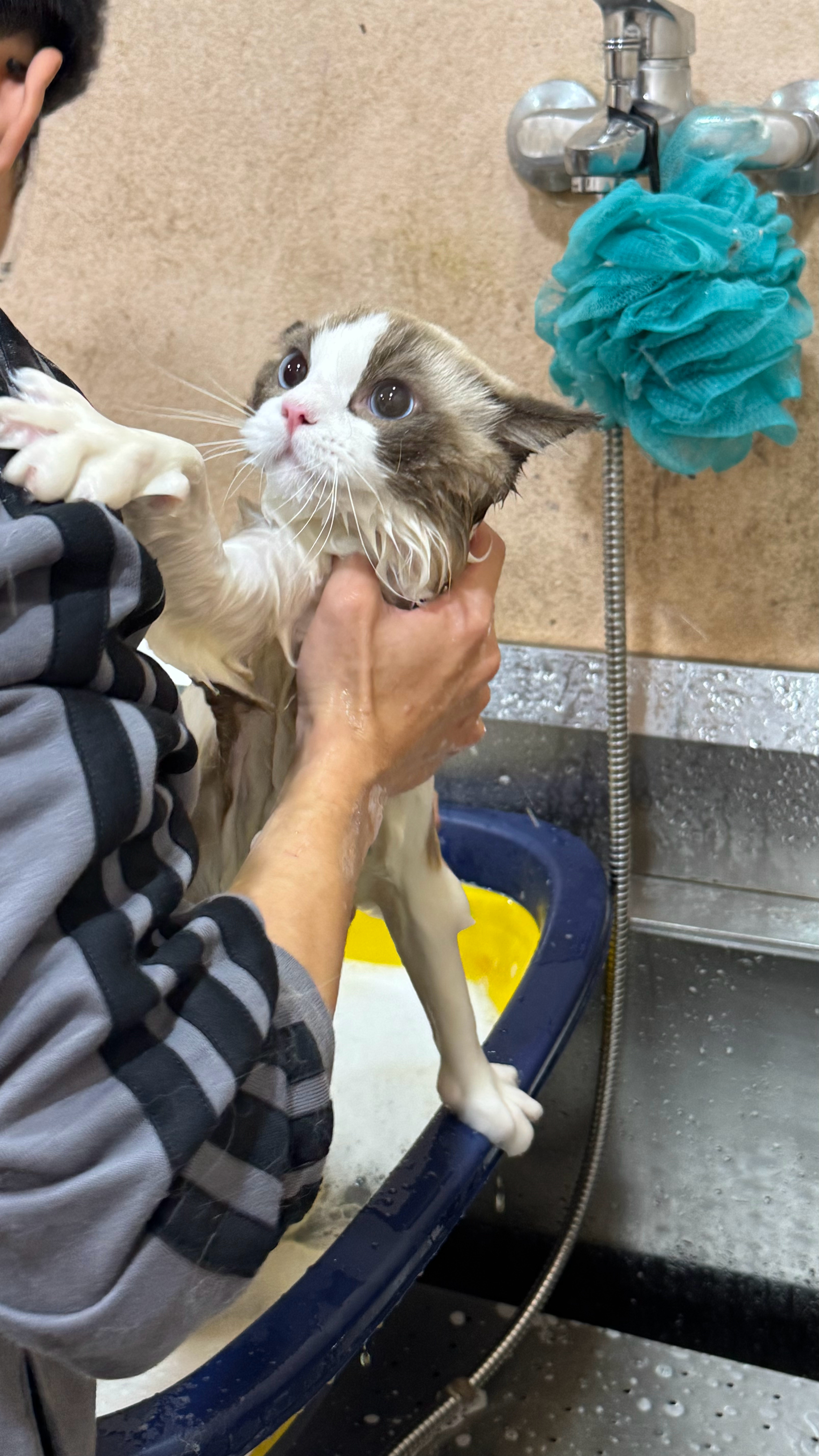 第一次在宠物店洗澡上次在家给他洗了一次随随便便受了一个1000块的小伤