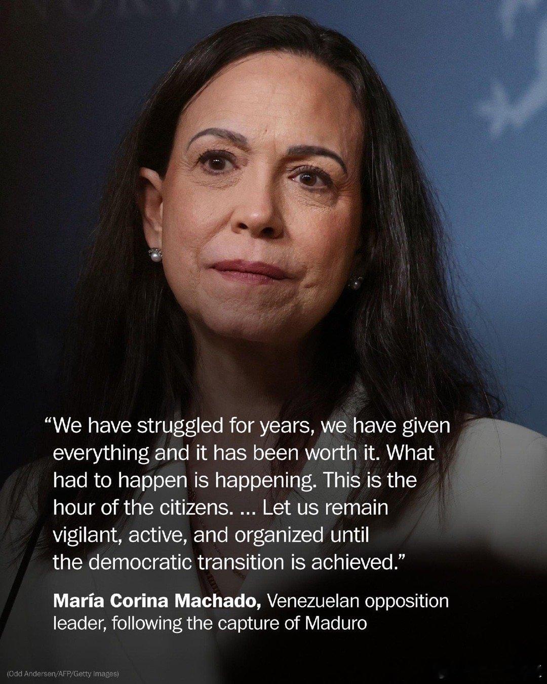 委内瑞拉反对派领导人发表声明,对马杜罗终于面临司法表示欢迎,她呼吁国人团结起来、保障安全过渡,并称“我们已准备好接手政府”