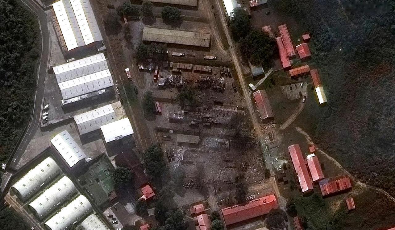 卫星图像:美军夜间空袭委内瑞拉蒂乌纳堡基地前后的对比照片