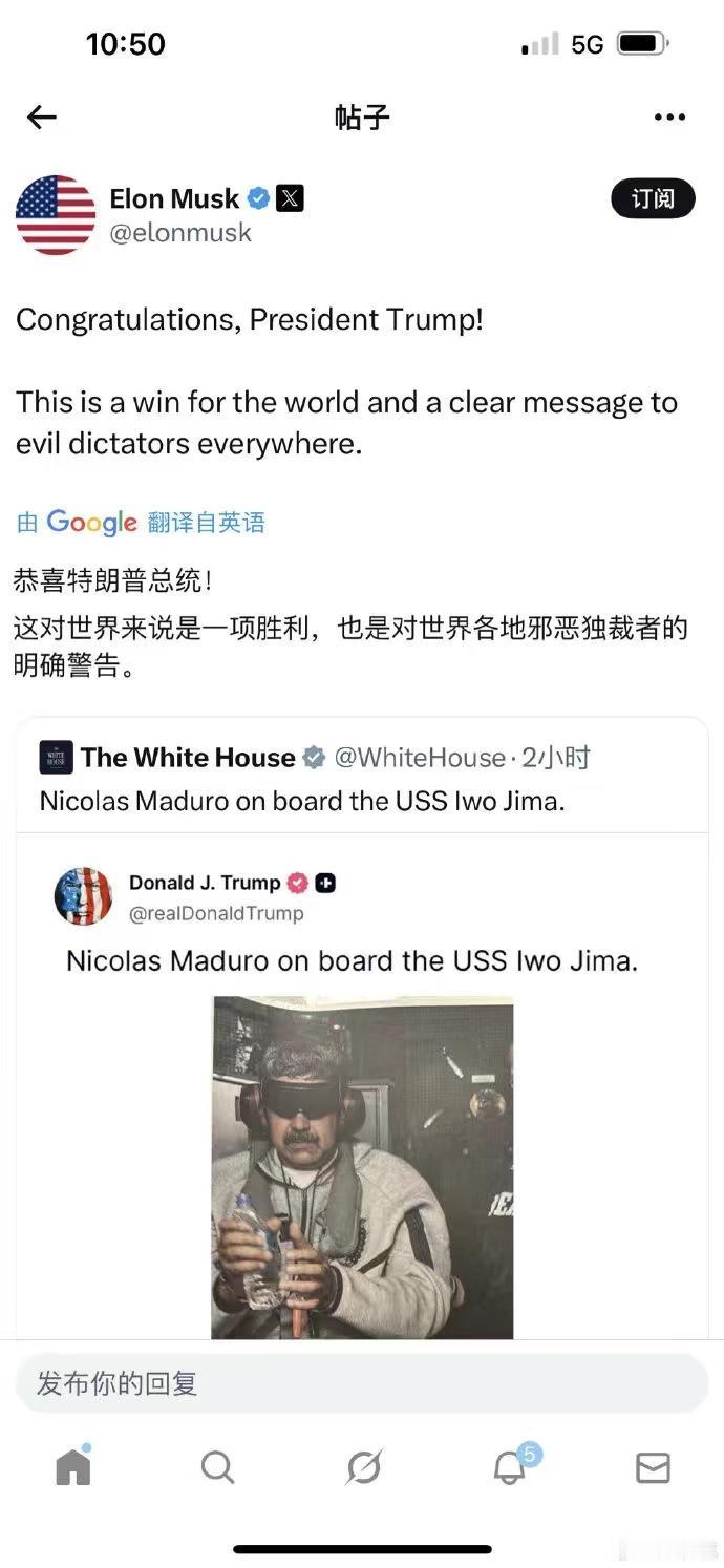 马斯克这次站在了川普一边,马杜罗和你有什么仇?五百年前都是一家子,何必要幸灾乐祸……#马杜罗# #委内瑞拉#