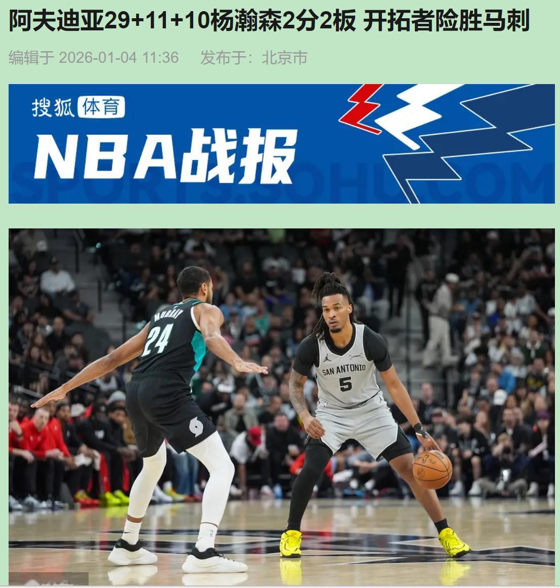 今天马刺主场输开拓者,我真的一点不意外。说句扎心的:这西部第二,水分可能比咱们想的都大。 文班不打不是借口。对面开拓者让了一套首发,咱们内线还是被克林根这新秀打爆了。人家抢板像饿虎扑食,咱们防得跟清晨马路似的。主场金身一破,那股“伪强队”的味儿就藏不住了。 赛季初赢球,好多是赛程红利。一碰上有身体、玩命拼的硬茬子,马刺就有点原形毕露。没文班,防守体系塌一半,关键球没人敢打,最后时刻就是来回倒手然后失误。看着真憋屈。 开拓者今天给全联盟打了个样:打马刺,就拼篮板、上身体、冲反击。咱们的“团队篮球”一到高强度就卡壳,球星硬解能力差的短板,被扒得干干净净。 说实话,作为球迷倒不怕输球,怕的是看不到改变。总不能一直指望文班当超人吧?其他人得站出来啊!瓦塞尔、KJ,得在硬仗里证明自己值那个价。篮板保护、防守轮转,这些脏活累活,不能文班一歇就全扔了。 这赛季路还长,这场败仗是冷水,也是镜子。早点看清问题,比在季后赛才发现来得好。马刺真要复兴,光靠一个天才不够,得全队都有那种“玩命”的劲儿。咱们期待的不只是文班的天赋,更是整支球队的骨气。 现在掉链子,总比季后赛崩盘强。接着看吧,看他们怎么回应。阿夫迪亚29+11+10杨瀚森2分2板 开拓者险胜马刺
